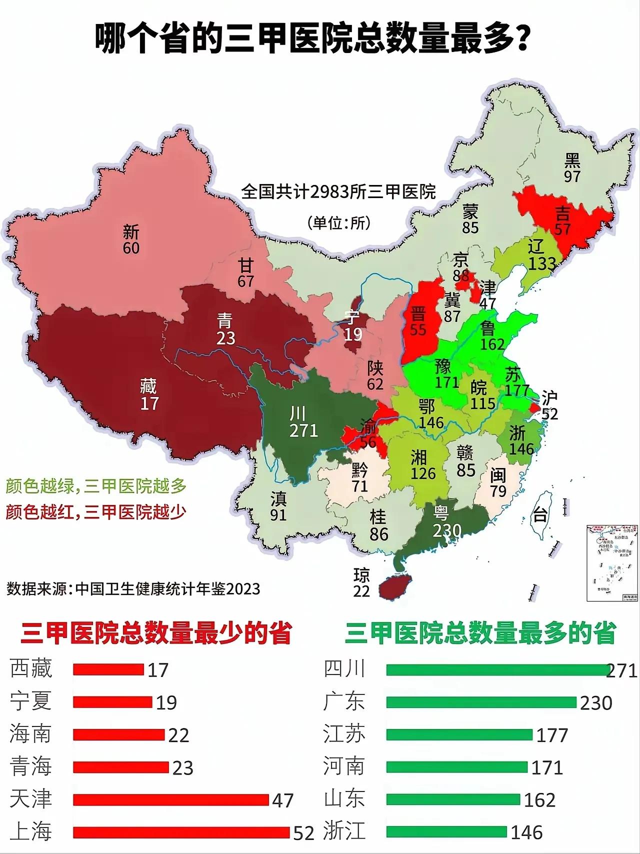 中国哪个城市的三甲医院最多 四川一枝独秀,广东也不示弱! 这次苏大强排到第三的位置 这次排名不是很合理,还是比较合理的吧!经济越强大的地方越来越多啊! 以上仅供参考,属个人意见!