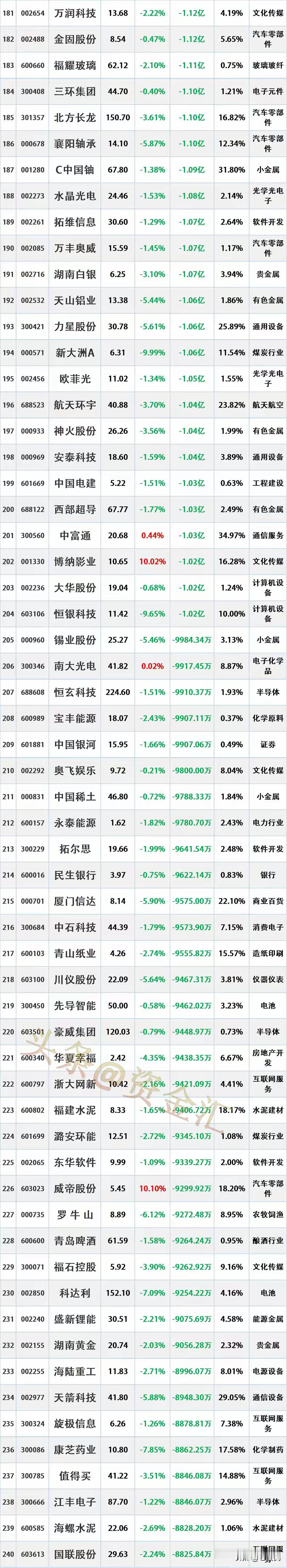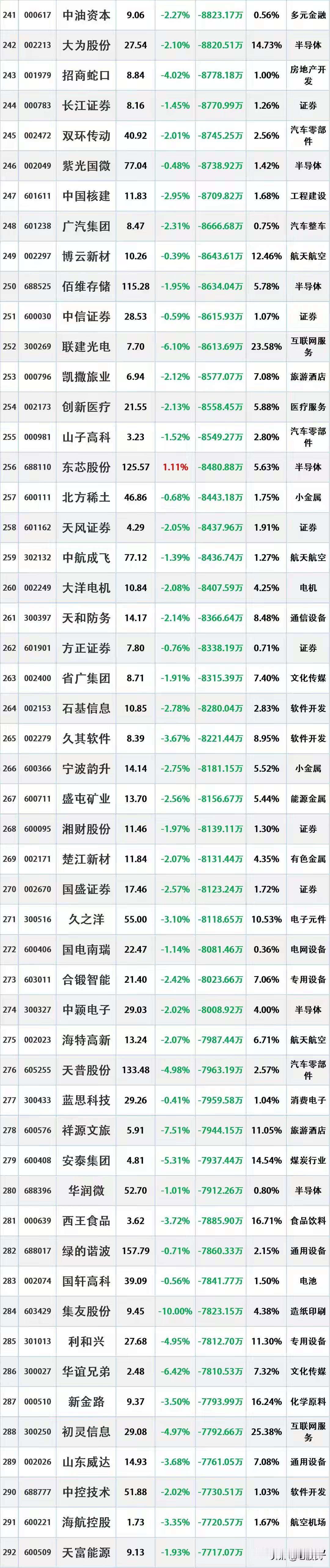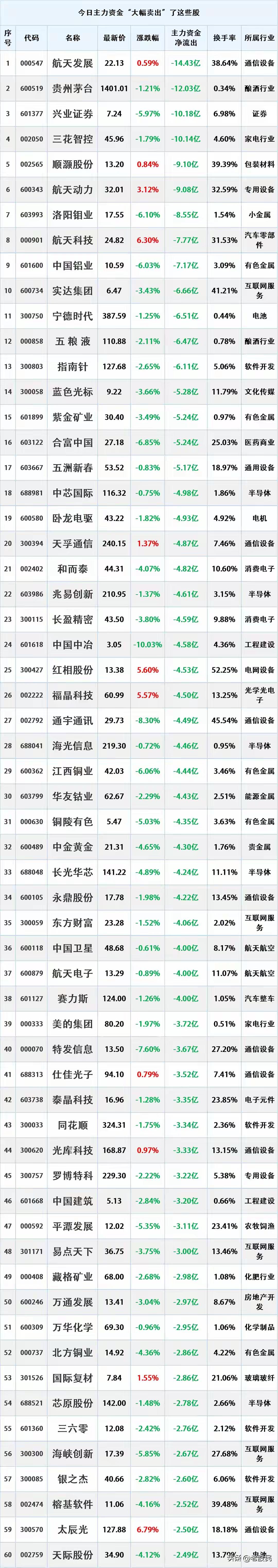 尾盘资金出逃,12月9日主力资金大幅流出的股票名单。 资金流出是指在一定时期内(如一天、一周等),主动卖出某只股票的资金量大于主动买入该股票的资金量。主动卖出是指投资者以买方的报价直接成交,显示出投资者对该股票的消极持有或抛售意愿。