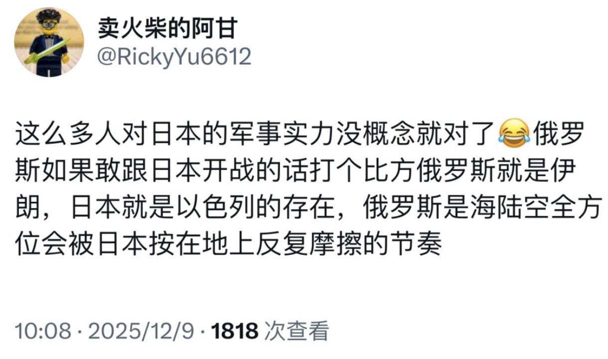 网友:许多人低估了日本的军事实力,其实日本很强的,如果俄罗斯敢跟日本开战的话,那俄罗斯就像是伊朗,日本则就像是以色列般的存在,日本打俄罗斯,俄罗斯的海陆空会被日本自卫队全方位碾压的节奏。 日本真这么厉害,有收回它的所谓的“北方四岛”了吗?日本能挑战驻日美军吗?!