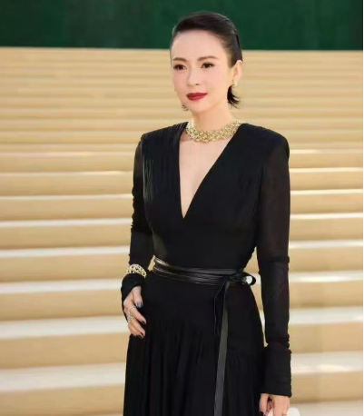 章子怡离婚后状态大回春!一袭黑色深V裙配盘发,美得优雅高级