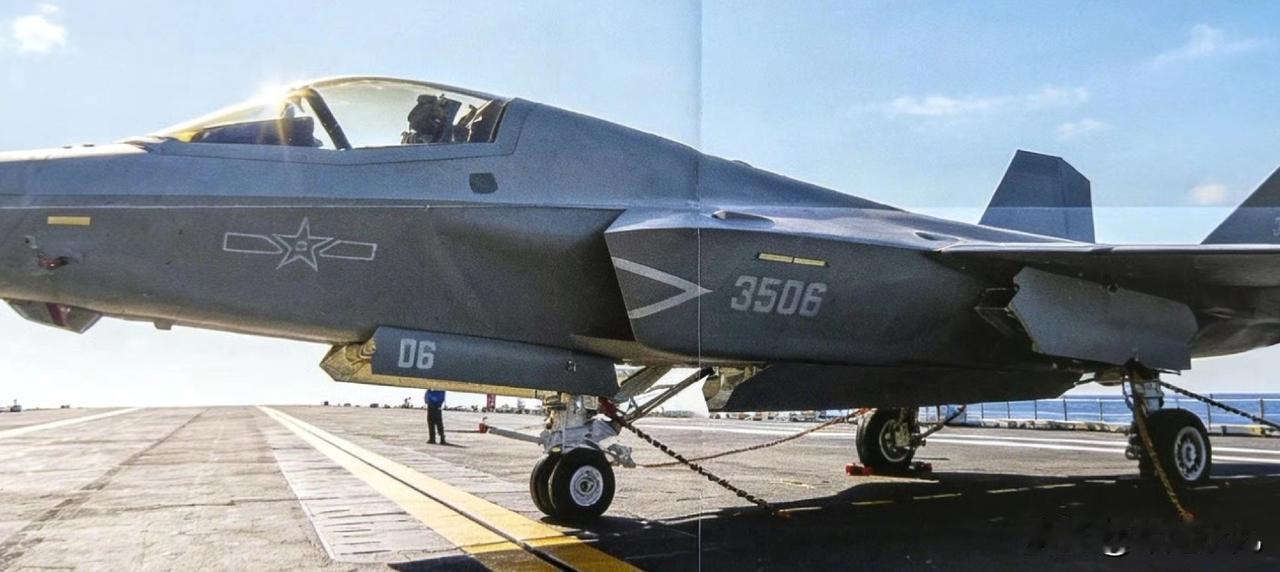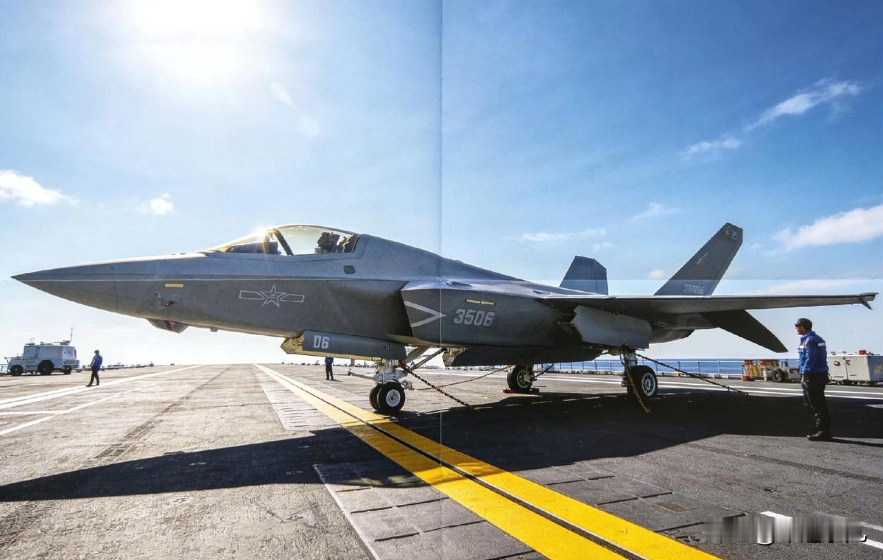 歼35最新视角画面曝光,这一次藏着巨大信息… 这一张歼35照片,确实是最新视角,是刊登在军事杂志上的照片,图片中,可以清晰看到书页的折痕,原图看起来清晰度非常的高! 通过图片可以看出,这一张照片,应该是在福建舰某一次海试期间拍摄的,从甲板工作人员的状态和着装,可以看出不是正式甲板作业期间,都没带帽子和耳机,很可能是,休整时间拍摄的! 依然是那一架3506,尾翼编号350006,这应该是海试前期编号,并不是服役后的编号状态,这一架歼35出镜率非常的高,也暗示,可能进行过多次首次各种试验! 不远处,停放着一辆白色车辆,不知道是干什么用的,前后轮胎大小居然还不一样,前面轮胎小,后面轮胎看着好大,看着也不像消防车! 该说不说,歼35,这个视角真的太帅了,机头看起来非常修长,质感更是出奇的好,前起落架双轮看起来更加结实耐用! 歼-35作为我国自主研制的第五代隐身舰载战斗机,其意义远超单件武器平台。它和歼-15T、空警-600一同构成了中国航母新一代攻防体系的核心,标志着中国海军的远洋作战能力实现了从平台到体系的代际跨越! 歼35与重型舰载机歼-15T分工协作,形成了理想的战术搭配。歼-35作为“隐身尖刀”,负责隐蔽突防、扫清敌方空中威胁、夺取局部制空权;歼-15T则作为“重拳”,在获得空优后,凭借大载弹量进行饱和式对海对陆精确打击。这种组合使航母的打击手段更灵活、更难防范! 大家怎么看?评论区说说你的看法!歼-35战机 歼35 歼 35 战机