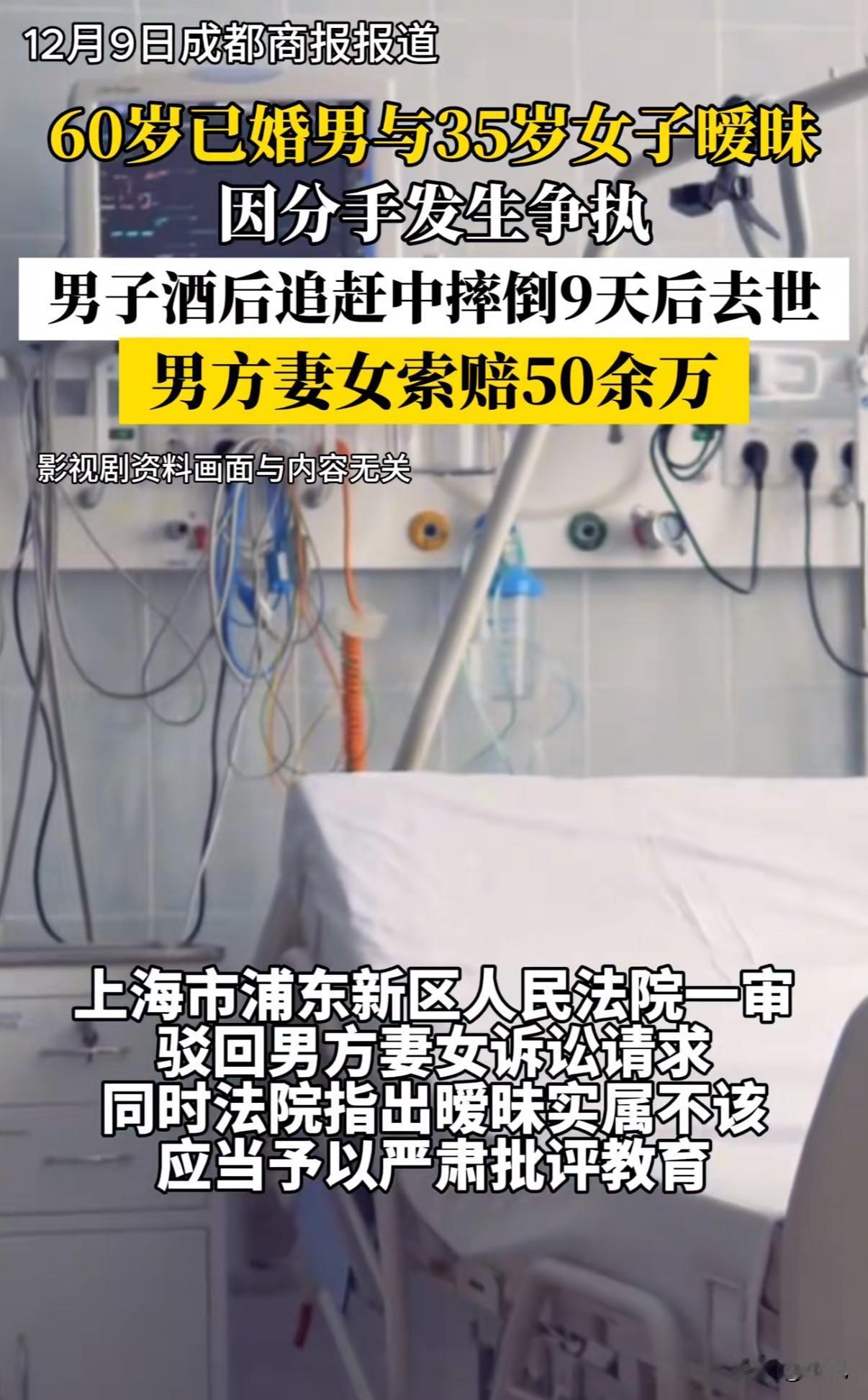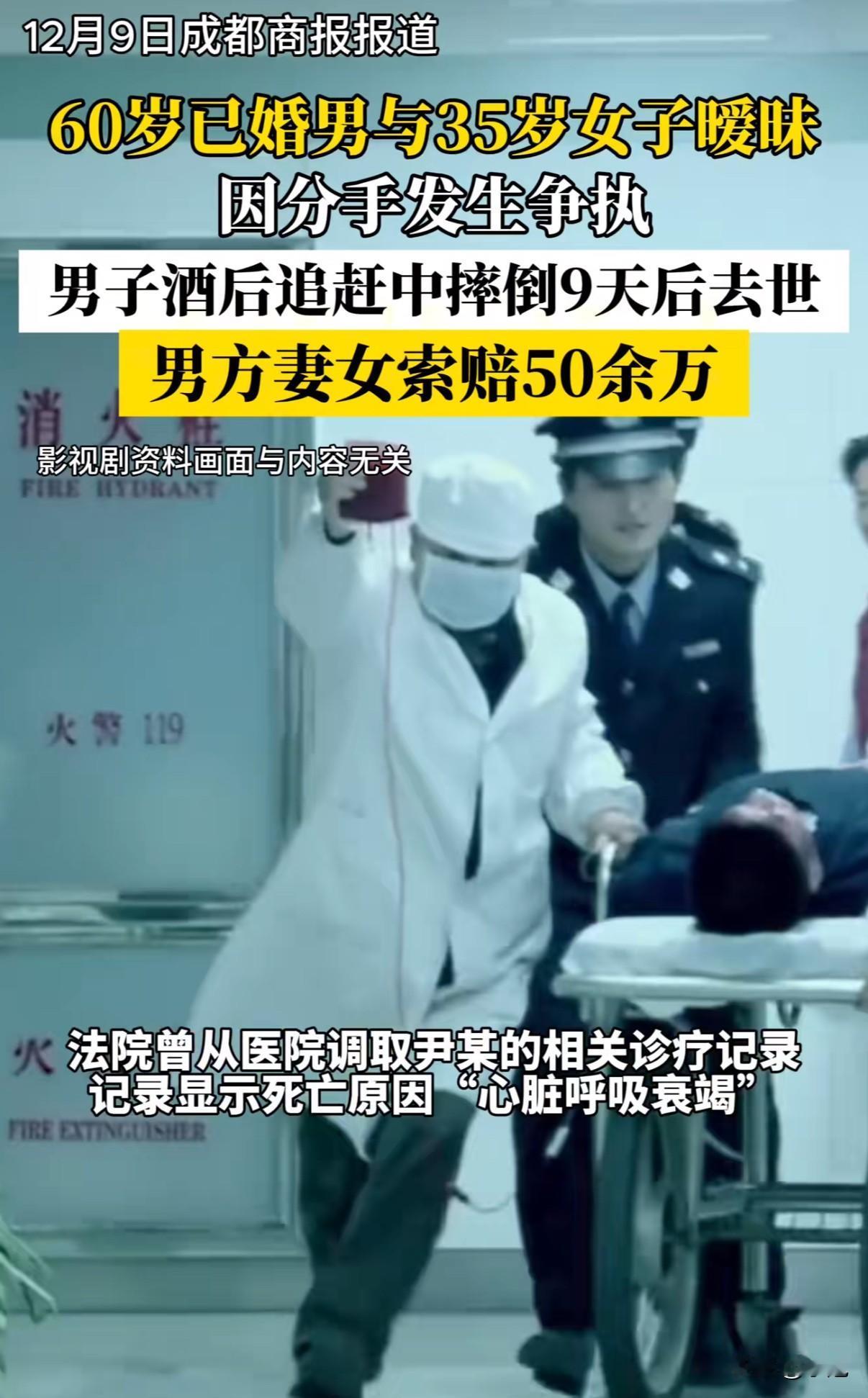 60岁的已婚男子,在追赶35岁暧昧对象时摔倒身亡,妻子女儿向女方索赔50多万,法