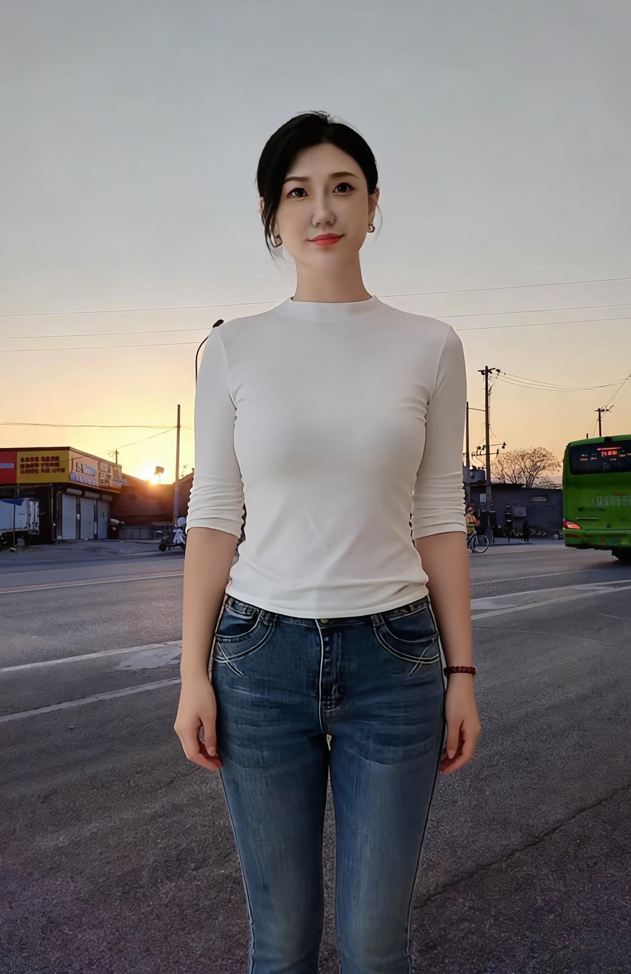 街头的节奏是急促的鼓点,她是一个休止符 白上衣摁住了车流的喧嚣,牛仔裤定住了脚步 落日的光洒在她身上,像撒了一把金粉 她的存在,让匆忙的街头,慢了下来 ~ 电线杆的影,斜斜地切过白上衣 牛仔裤的缝线,是街头的纹路 她的目光望向前方,越过车流,越过人群 像在寻找,落日之外的光芒 ~ 公交车的绿,是街头的一抹跳色 与她的白,撞出清新的契合的美 风从街角吹来,掀动白上衣的衣角 像一只手,轻轻拨弄着街头的弦 ~ 当落日隐入建筑,她仍站在那里 白上衣是夜的前奏,牛仔裤是街头底色 她成了街头的一个符号,干净又坚定 在烟火人间里,守着自己的纯白