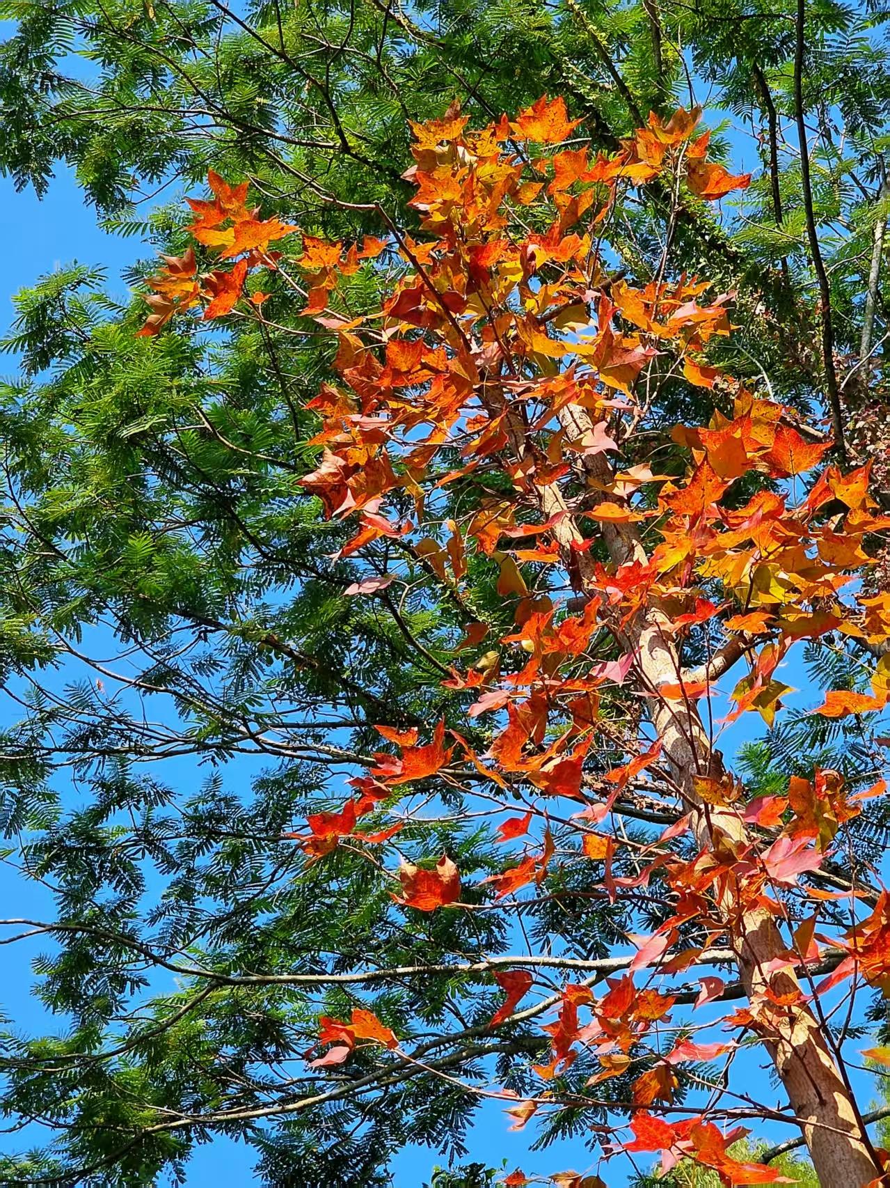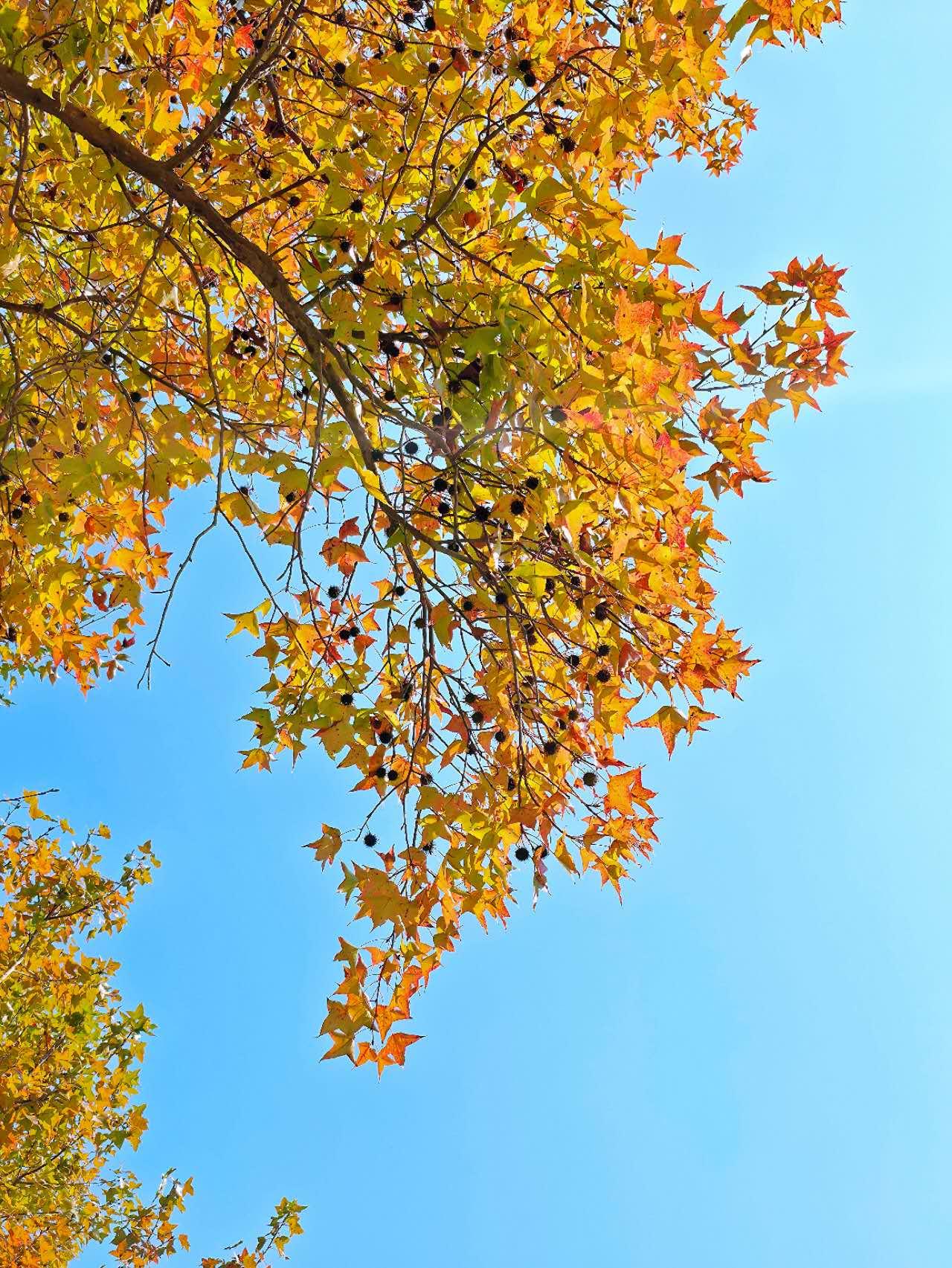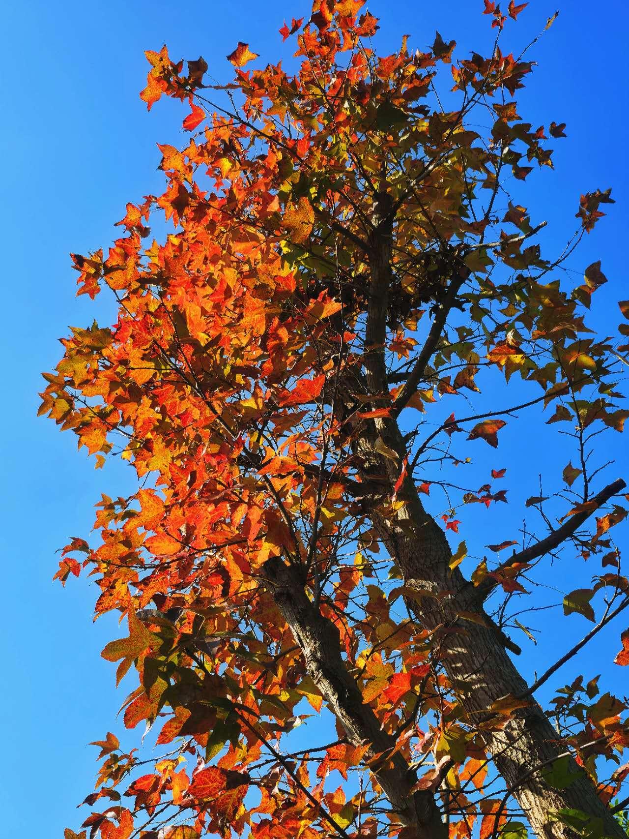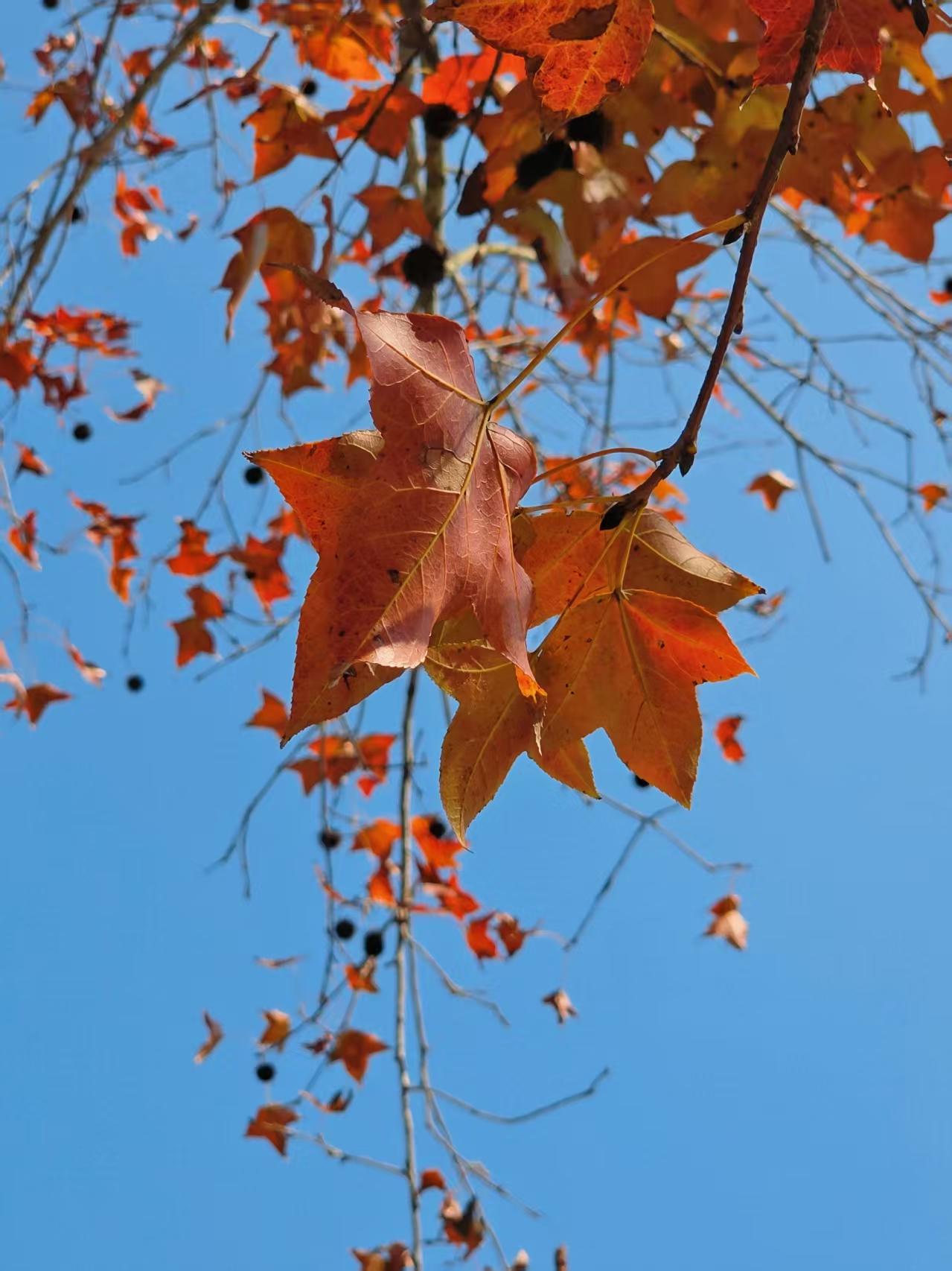 秋意渐浓,枫叶飘红,蓝天映衬,美不胜收。 秋意渐浓,枫叶飘红,蓝天映衬下的景色确实美不胜收。就像校园里的枫叶,红得似火,与蓝天白云交织,宛如一幅绝美的油画。 风把调色盘打翻,红枫爬满校园边。课铃摇落的枫叶,夹进课本成了秋天的书签。石阶印着碎红笺,脚步轻踩过流年。当第一片枝叶染上朱红,仿佛是对自由的向往,金风将它吹起,飘向自由的彼岸。 自古红叶最多情,片片飘飞如蝶舞。在这秋意中,赏着枫叶,感受着自由与浪漫,真是惬意极了。 枫叶红时秋景美