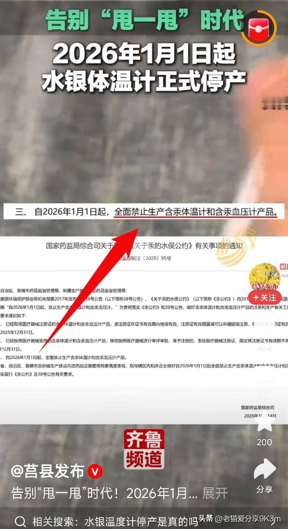 朋友们, 家里的水银温度计爱惜着用吧! 最近线上线下店铺的水银体温计全被抢空! 网友们纷纷哀嚎:“买个温度计也要靠抢了?!” 这波抢购潮背后,其实是2026年1月1日全面禁产含汞体温计的政策在“搞事情”啊! 为啥非要淘汰水银体温计?难道不能改进得更安全吗? 真相是:汞的危害真的太大了! 水银(汞)有毒!打碎后挥发成蒸汽,吸入会伤神经、肾脏,甚至致命! 日本水俣病就是血泪教训!工厂排汞污染海水,居民吃鱼中毒,畸形儿、瘫痪惨剧频发… 全球都怕了! 《关于汞的水俣公约》要求中国2026年起禁产,保护环境和健康。 那电子体温计真的不准吗? 护士小姐姐都吐槽过! 确实可能有误差,但技术早升级了! 误差在0.1℃内,发热判断完全够用! 电子款:快速、方便、不碎! 老人小孩用更安全~ 现在抢水银体温计有必要吗? 产后库存卖完即止,但替代品早备好! 囤货请注意:千万别打碎! 清理汞要戴手套+通风,别乱扔! 家人们,你们觉得水银体温计该淘汰吗?还是囤几支备用? (文章素材来自莒县发布,侵删)