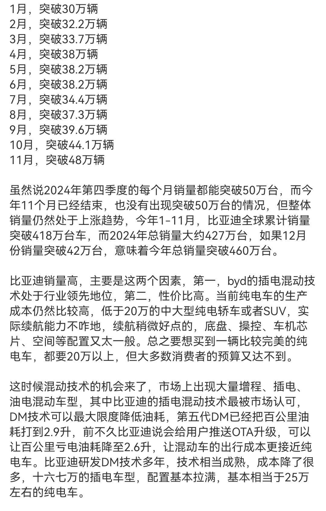 比亚迪:怎么做,才肯放过我? 比亚迪的销量神话仍在继续,月月破纪录,年年有进步,去年更是跻身全球前五车企,不拉踩同行,不恶意竞价,埋头研发,深拓海外,就这还有人黑。 作为中国新能源车的代表,比亚迪技术过硬,电池质量也是杠杠的,是同行争相学习的对象,为什么有些别有用心的人还在刻意抹黑,其目的可想而知。 大变局是汽车工业的转机,我们应该同心协力,让中国汽车更好,中国的汽车工业更强。你们说呢?
