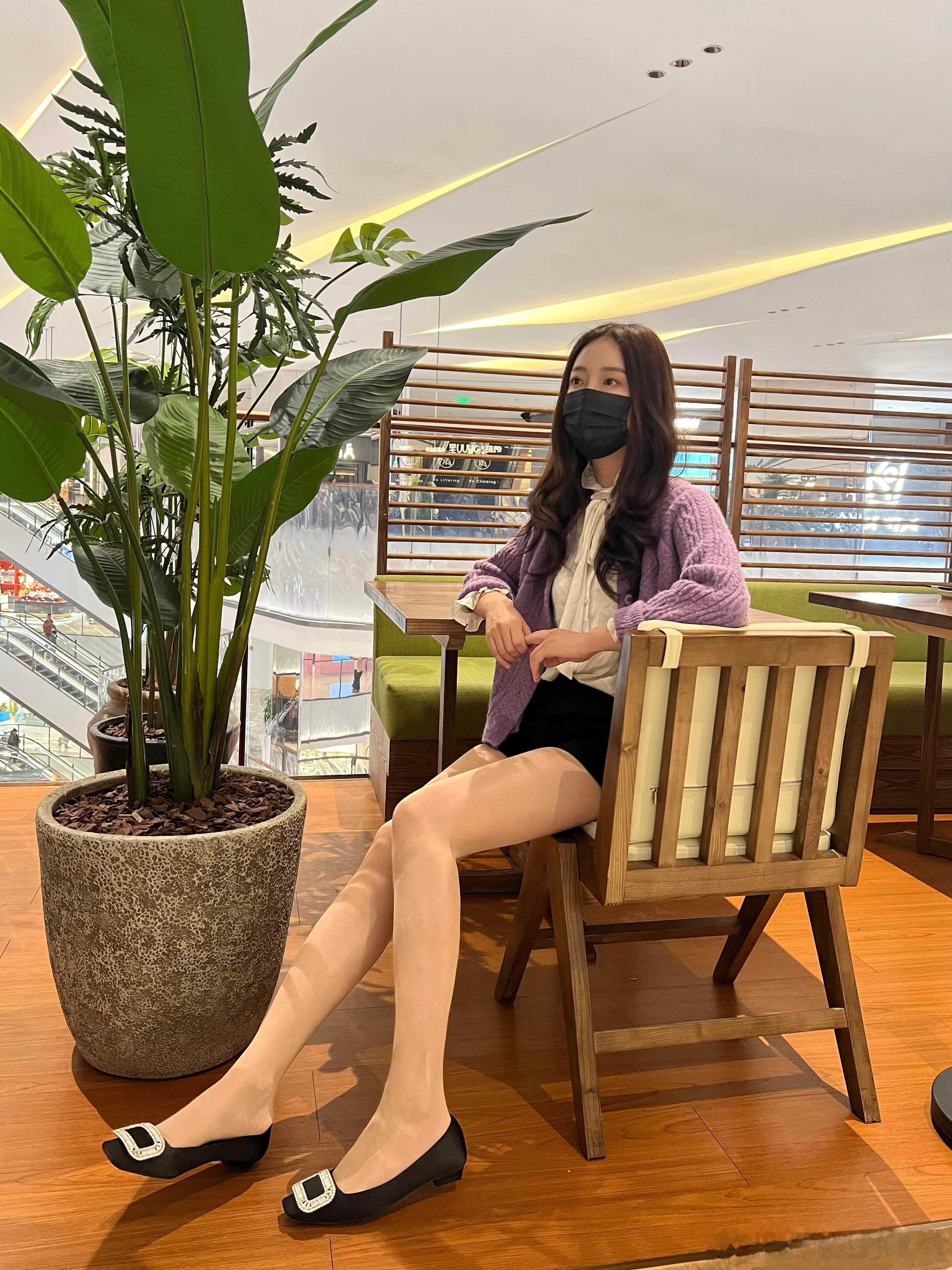 白色蝴蝶结领衬衫搭配咖啡色半身裙薄款咖啡色连裤袜高跟鞋~