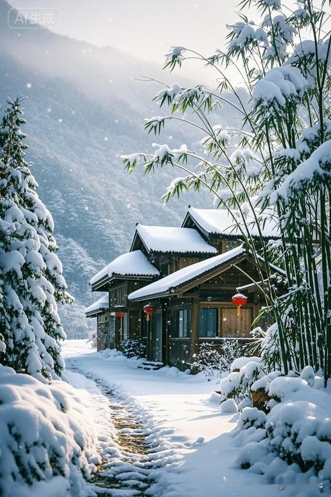 冬日仙境,雪中静谧村庄,宛如童话世界。有什么好看的壁纸分享吗? 能分享一张手机里最喜欢雪景照吗 一组绝美风景图片 雪景照片 治愈系冬日美景