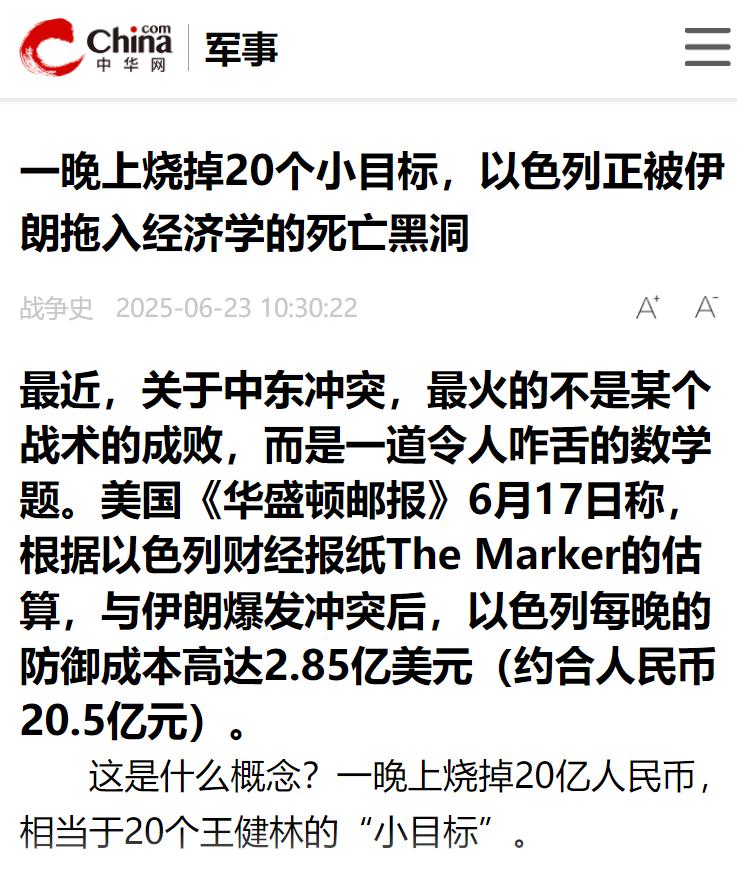 罕见,以色列承认损失惨重,大量高价值目标被摧毁,最致命弱点暴露 以色列时报12月5日消息,以色列国防研发局(MAFAT)局长在对与伊朗之间的12天战争进行总结时罕见承认,这次冲突中以色列遭遇惨重损失。以色列方面承认,尽管拦截了大量的伊朗导弹和无人机,但伊朗还是有至少75枚以上导弹突防成功并且成功命中目标,而这些突防的还都不是伊朗的存货,全是 “法塔赫” 这类拿得出手的高超音速导弹和新型号,那些被拦截的老旧导弹,说白了就是用来消耗以色列拦截弹的 “诱饵”。 伊朗的 “法塔赫” 导弹可不是吃素的,13 到 15 马赫的速度让以色列的雷达根本来不及反应,末端还能机动变轨,就算雷达勉强锁定,导弹一个急转弯就能摆脱追踪,号称能拦截各类目标的 “铁穹”“箭 - 3” 系统,面对这种速度和机动性直接束手无策。 而在这般饱和攻势下,以色列只能倾尽防御家底硬抗,所谓的 “中东小霸王” 在真正的导弹雨面前,弱点也随之暴露得明明白白。 第一个弱点:2.5万平方公里的实际控制面积,说难听点还不如中国一个地级市大,核心城市特拉维夫、海法、耶路撒冷挤在西部沿海一带,城市之间的距离近到导弹都不用调整太多航向,75枚突防导弹就能把这些关键节点挨个点名。 没有战略纵深的短板在密集袭击下被无限放大,别人家的国土还能靠空间换时间拦截反击,以色列连让导弹飞一会儿的距离都没有,刚探测到目标就已经逼近城市上空,所谓的多层防空系统在这种地理限制下根本施展不开。 第二个弱点是:以色列对美国的依赖已经深到骨髓里,自1946年以来美国给的援助累计超过3100亿美元,光新一轮冲突后就砸了217亿美元,现役的F-15、F-16、F-35战机全是美国货,甚至连攻击直升机和运输直升机都没一款是自己造的,69%的常规武器进口都来自美国。 没了美国的弹药补给,以色列的战机恐怕都飞不了几架次,这次冲突中虽然美国帮忙拦截了不少老旧导弹,但面对伊朗的新型武器,美国提供的防御系统也照样掉链子。 说白了就是把国家安全绑在别人的战车上,人家给什么就只能用什么,自己根本没能力独立应对高端战争。 第三个致命弱点就是核心目标太集中,简直是把鸡蛋都放在了一个篮子里。 特拉维夫的金融区贡献了全国近15%的GDP,海法炼油厂承担着三成以上的成品油供应,南部电站是重要的能源枢纽,再加上集中了全国七成国防研发力量的科技园区,这些高价值目标全扎堆在少数几个城市里。 伊朗显然摸透了这一点,导弹专挑这些地方打,一下就击中了以色列的七寸,海法炼油厂被炸后,以色列本土出现了短暂的能源短缺,科技园区受损直接导致部分国防项目停滞,摩萨德秘密基地被端掉36名军官死亡,更是让情报系统元气大伤,这种集中化布局平时看着高效,遇上战争就是致命的软肋。 最后一个躲不开的弱点:就是防御体系存在致命短板,面对高超音速导弹几乎毫无还手之力。 以色列一直吹嘘的“铁穹”系统,对付低速火箭弹还行,遇上伊朗“法塔赫”这样的狠角色就彻底失灵了,这款导弹速度高达13到15马赫,还能在大气层外机动,雷达根本没法预判航向,甚至能主动电子干扰反导系统。 以色列承认被拦截的都是老旧导弹,突防的全是这类新型武器,说明花大价钱打造的防空网,在技术代差面前就是摆设。 以色列国防研发局本来想靠技术优势压过对手,结果自己的科研中心反而被导弹击中,研发能力遭到重创,相当于用事实证明了自己的防御技术根本跟不上对手的进攻节奏,这种技术上的被动,比兵力不足更难挽回。