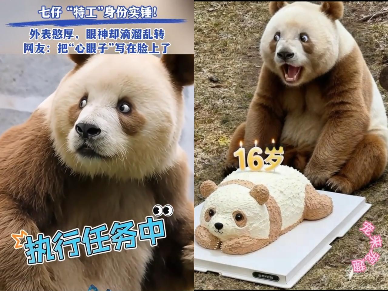 七仔又双叒被戏精“上身”啦! 这演技,给它颁个奥斯卡影帝估计没人会反对吧咱都知道 大熊猫1岁相当于人类3.75岁,七仔今年都16岁了,换算下来都60岁啦,不知不觉步入老年生活咯。说不定啊, 它是为了逗那些慕名而来的游客开心,才故意装得天真幼稚,好让大家觉得“这趟没白来”。野生大熊猫平均寿命15 - 20年, 圈养的能活得更久,像香港海洋公园的“佳佳”就活到了38岁,相当于人类110岁,可长寿啦。 我就希望七仔能一直保持这颗童心, 越活越年轻,“心眼子”也越来越多,继续给大家带来欢乐。你们喜欢七仔这戏精模样不?快来聊聊呀!