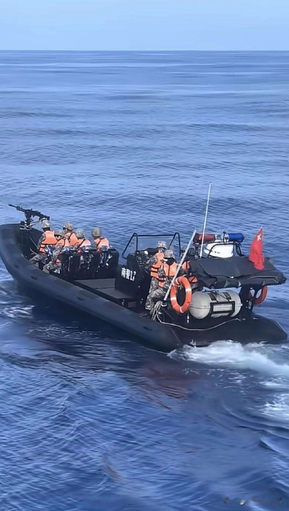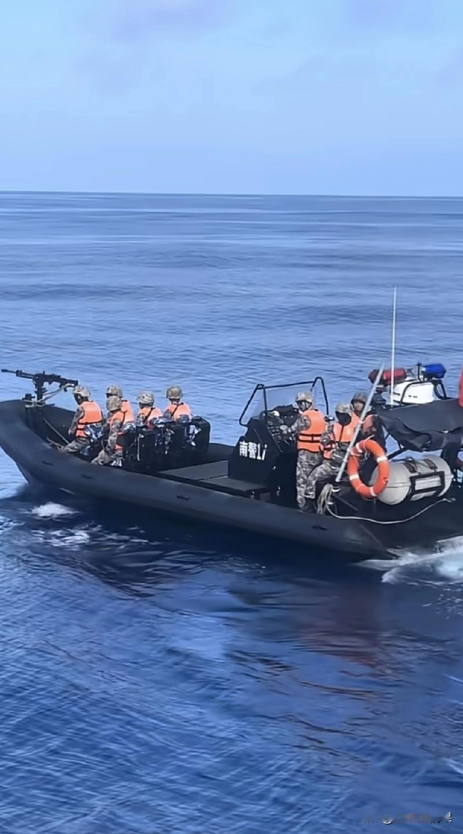 强烈建议把重机枪前面加一块防弹钢板,这样可以避免万一发生交火可以更好的保护射手进行还击。 不然像这样,没有防护盾很容易在轻度交火中吃亏。这个视角是外籍非法渔船闯入我们的海域他们拍摄的,我们的执法力量正在执法。