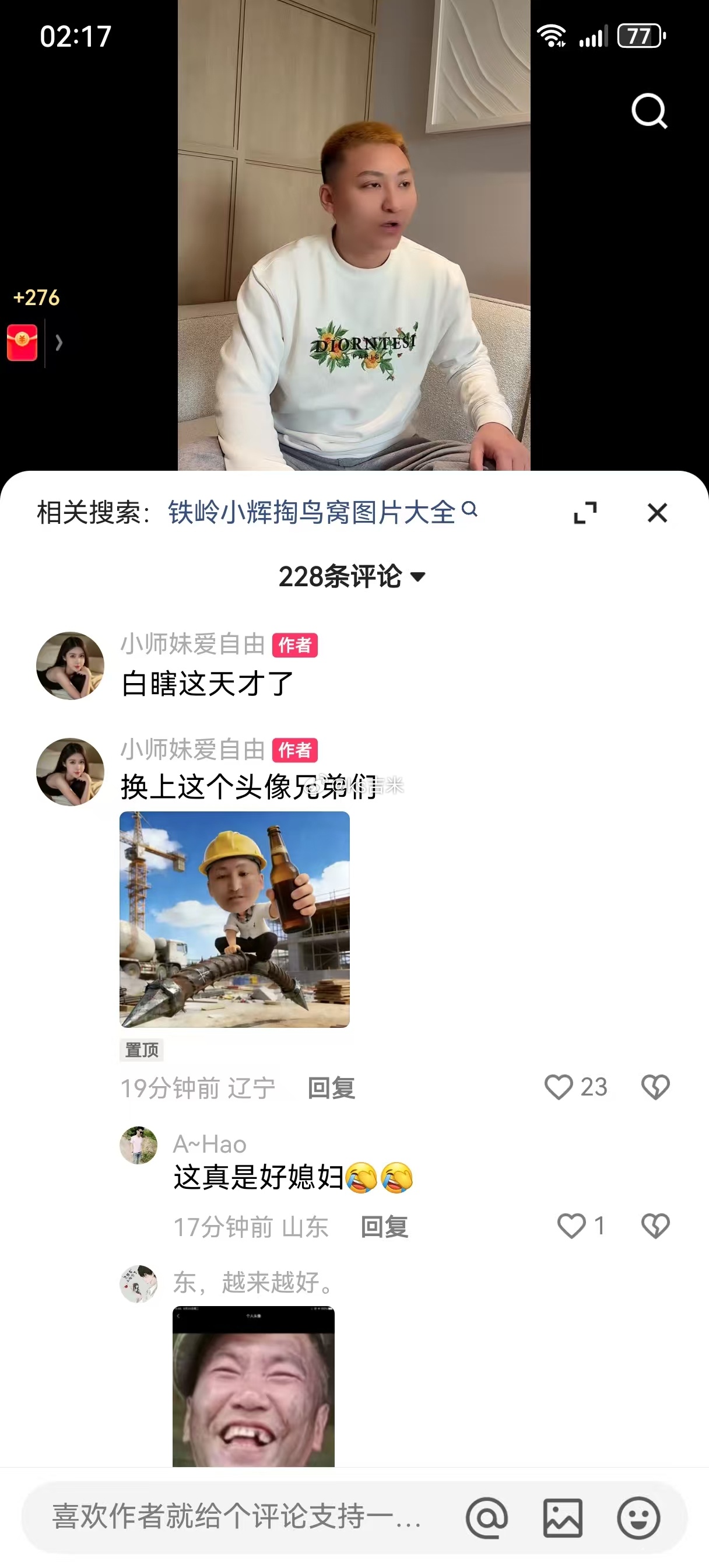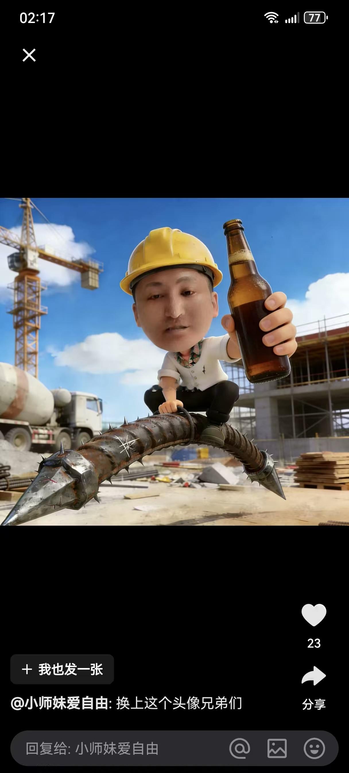 铁岭小辉前妻小师妹让铁粉把头像换成小辉做在钢筋头上的图片!ps:不以露鸟为耻,反以为荣!
