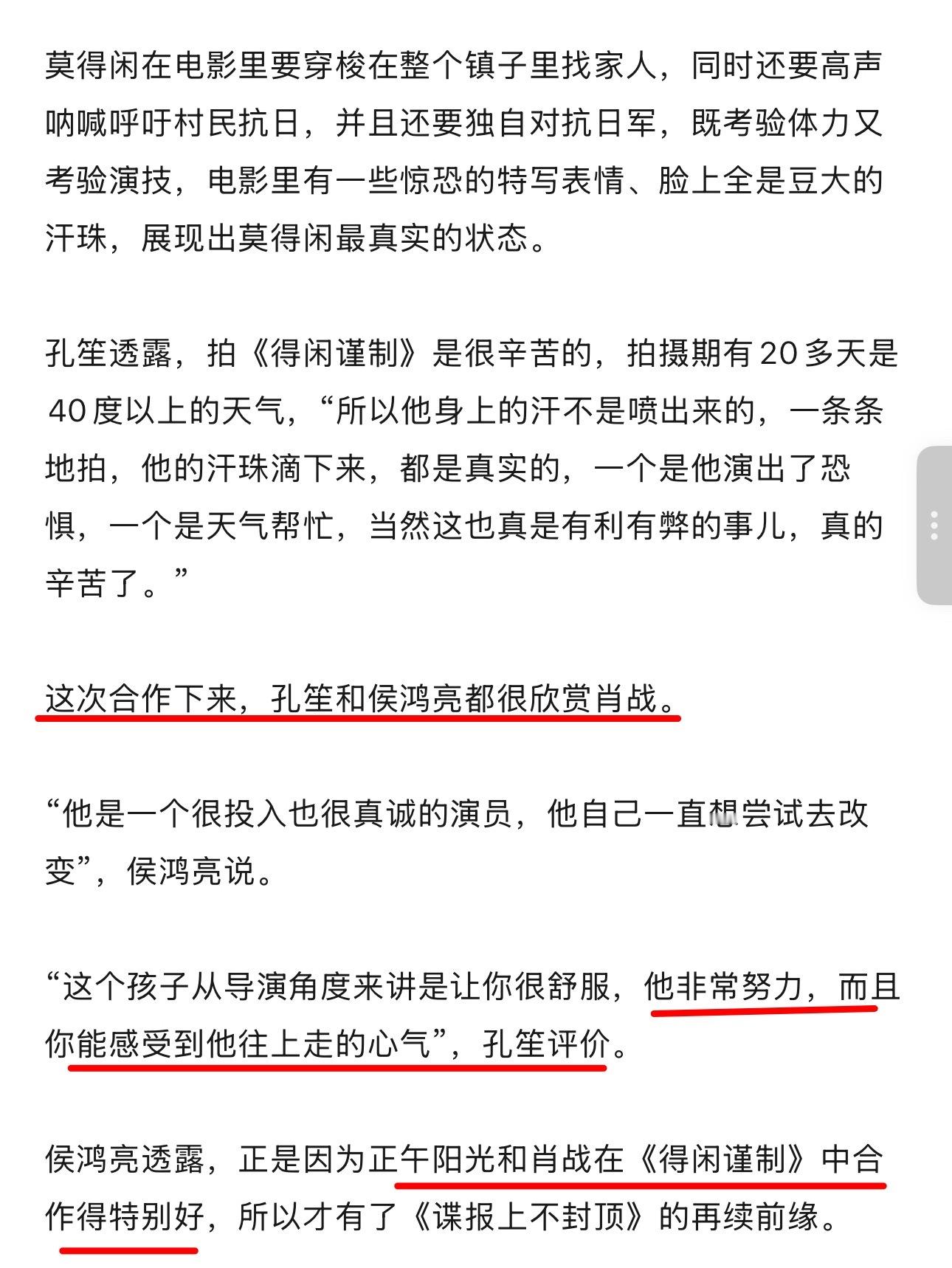 “正是因为正午阳光和肖战在《得闲谨制》中合作得特别好,所以才有了《谍报上不封顶》的再续前缘。”一句话概括了所有,正是基于对肖战的肯定、满意和欣赏,于是有了继续合作的愿望。“你们能感受到他往上走的心气”,一个有天赋条件好肯努力还不断追求上进的人,真业内看在眼里,观众能感受得到,肖战走过的每一步流下的每一滴汗水都算数。
