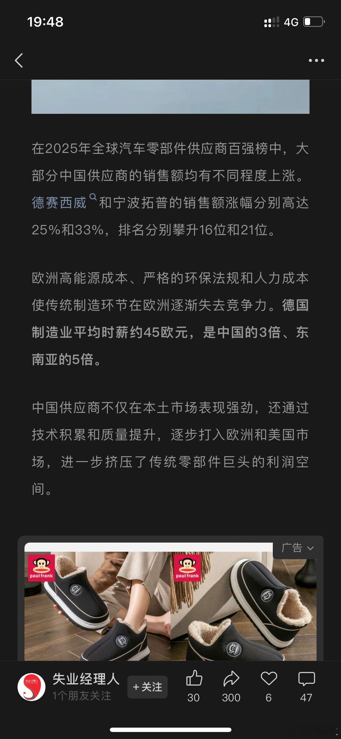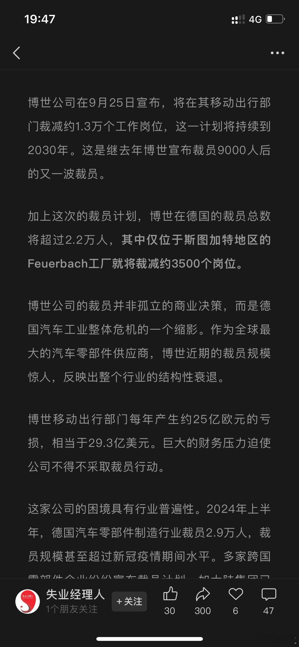 看到一篇关于博世德国裁员相关内容的文章,看得出来德国汽车工业水深火热之中,反观我国,汽车工业如火如荼,还有不少新入局者,好些公司还大肆扩张,比如最近一段时间新闻不断的奇瑞,以及吃了高端化甜头的江淮,还有早吃螃蟹的赛力斯,最近听到大量招人的也就差不多这几家。不过文章里提了一嘴,德国制造业平均时薪是中国的3倍,东南亚的5倍,好羡慕啊。不过我也很知足了,毕竟算起来我们比东南亚还高60%,太棒了,先不管东南亚制造业卷不卷哈。