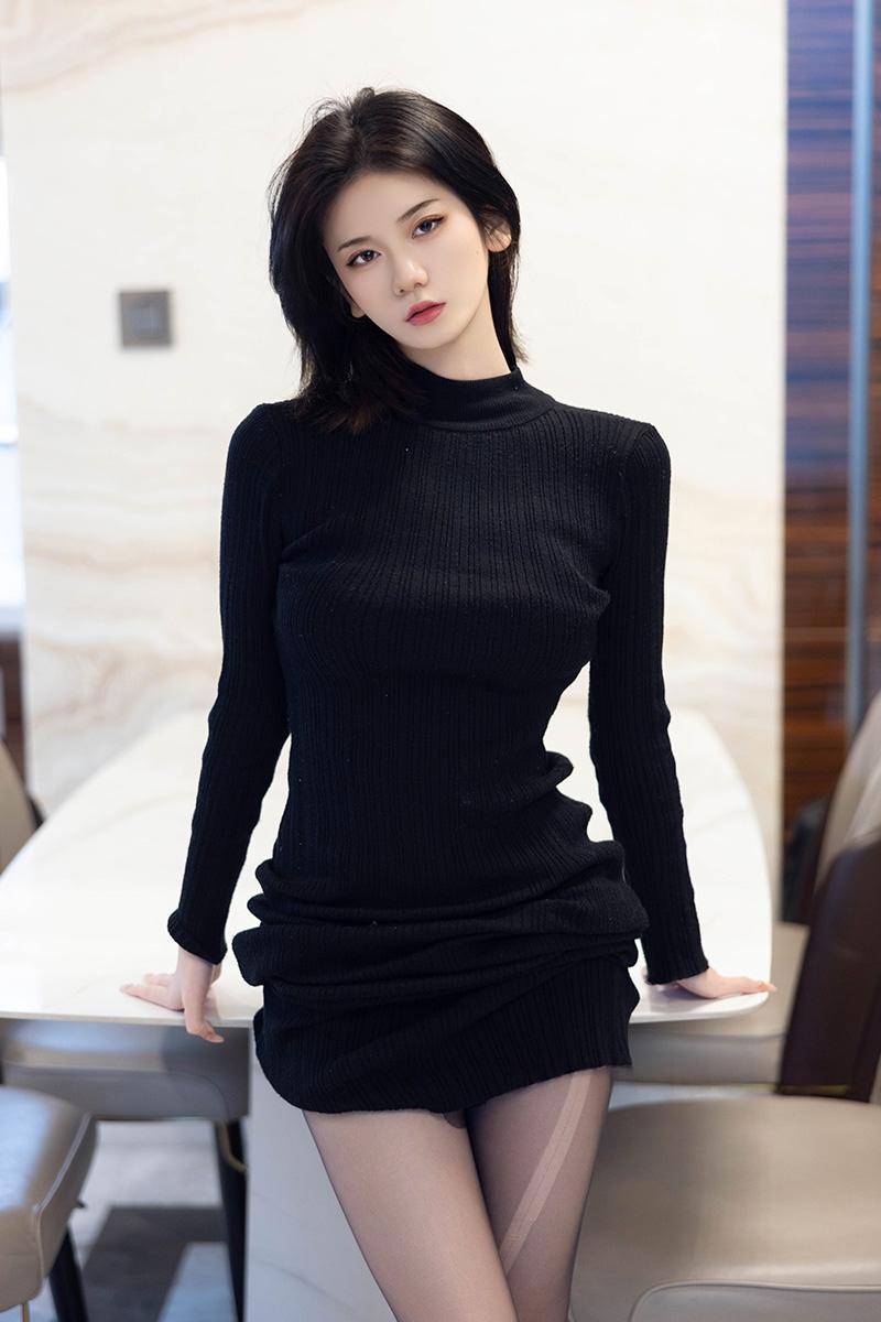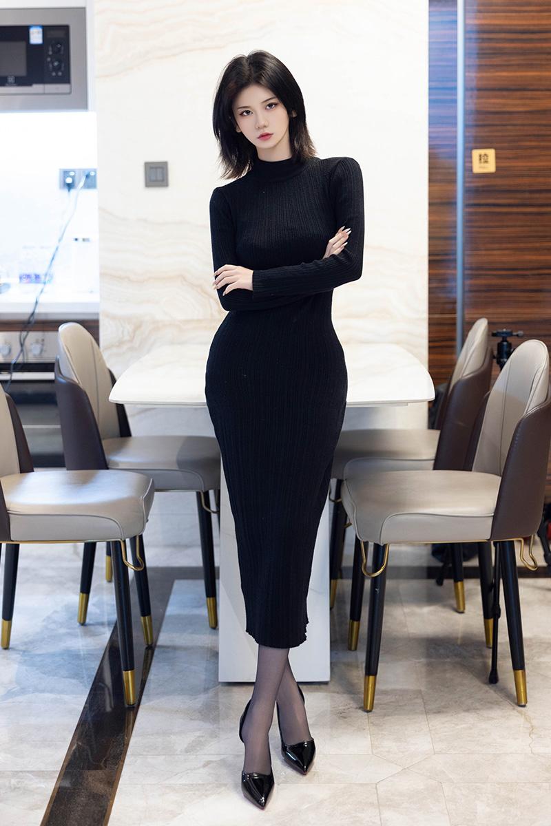 长腿模特赵语嫣黑色连衣裙写真图美女