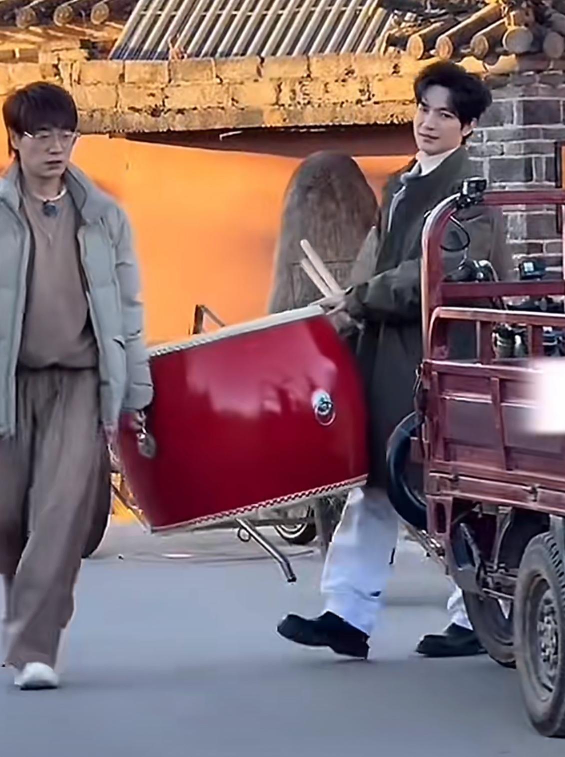 《快乐老友记》路透:哥几个怎么🈶️种过年的感觉。 在网上东拼西凑看哥几个的节目路透,他们好像很忙碌,忙着搬各种东西,楚生与亮哥搬了一个大鼓,虎子推车上也是很多玩具。 哥几个衣着光鲜,模样也都好看……感觉他们好像在忙年,我也像过年一样开心。