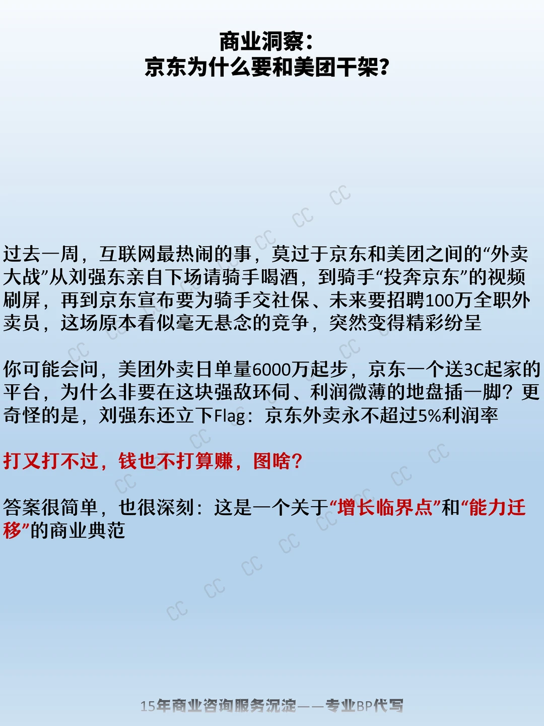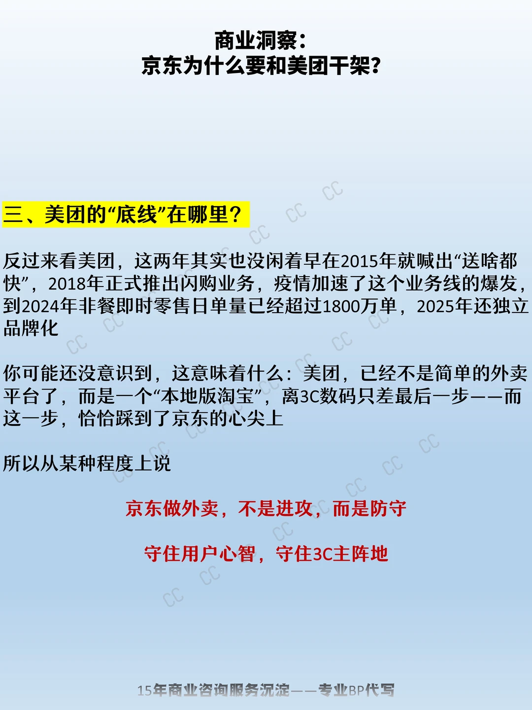 站在2025年,京东和美团之间这场“看似不理智”的对战,可能正在重新塑造一个行业生态:高频场景再洗牌、骑手制度倒逼优化、平台边界继续模糊…… 这不只是两家大厂的博弈,更是一个持续变化的市场信号。而变化,永远是新机会的温床 所以,别光看热闹,要学会从中找到你能插进去的“边界缝隙” 创业者们,CC请记住这一条: 能力边界,就是你最靠谱的扩张边界 商业变化,就是你最有利的机会窗口 商业模式 京东美团大战 美团京东大战 美团京东 京东外卖 京东外卖入局