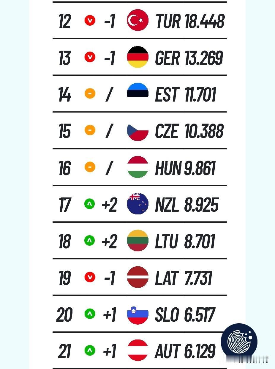 国际冰壶联合会:女子冰壶世界排名 1、瑞士🇨🇭 2、加拿大🇨🇦 3、韩国🇰🇷 4、瑞典🇸🇪 5、日本 6、苏格兰🏴 7、挪威🇳🇴 8、丹麦🇩🇰 9、意大利🇮🇹 10、美国🇺🇸 11、中国🇨🇳 12、土耳其🇹🇷 13、德国🇩🇪