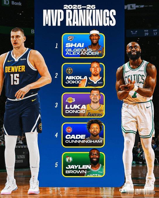 MVP榜出来了,亚历山大,约基奇,东契奇前三 赛季进行了四分之一,MVP榜单变化不大,还是亚历山大登顶,约基奇,詹姆斯紧随其后,坎宁安高居第四,进步巨大,领袖气质展现,坎宁安一步步走向巨星,杰伦布朗打出生涯最佳表现,高居第五,字母哥,文班亚马连续缺席比赛,已经掉队了东契奇 约基奇 NBA实力榜 nba实力榜 西部nba排名 东契奇名场面
