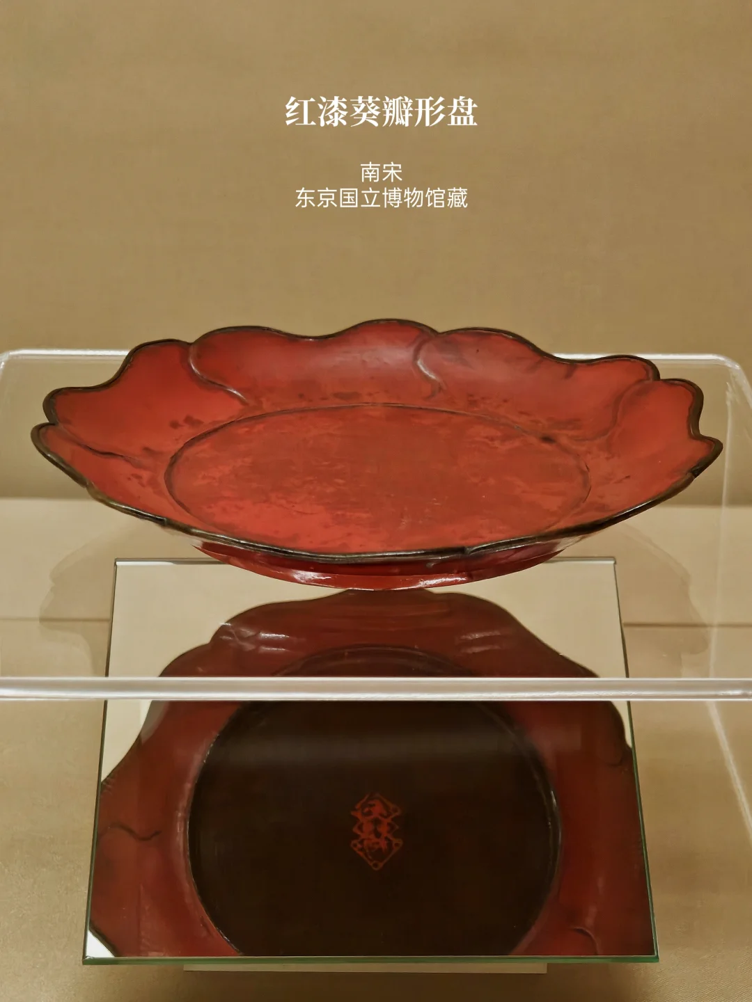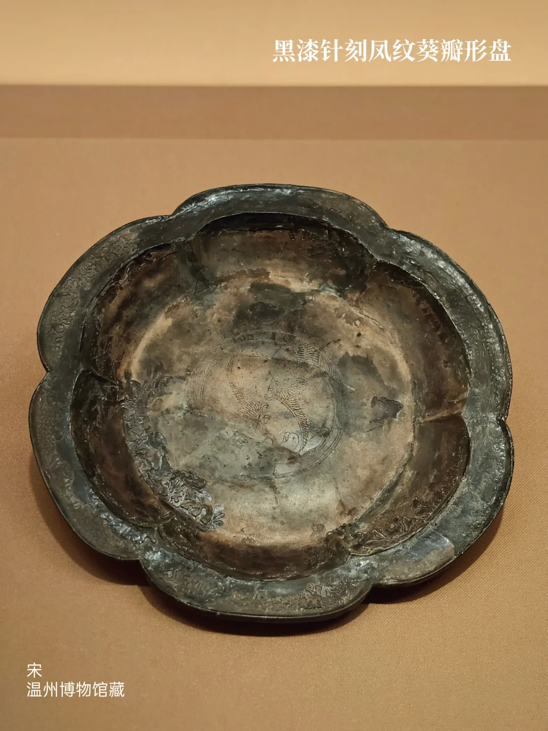 ⚫宋 黑漆针刻凤纹葵瓣形盘