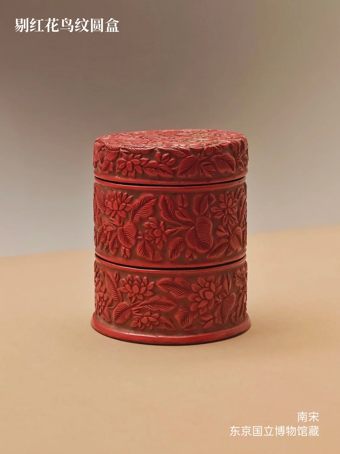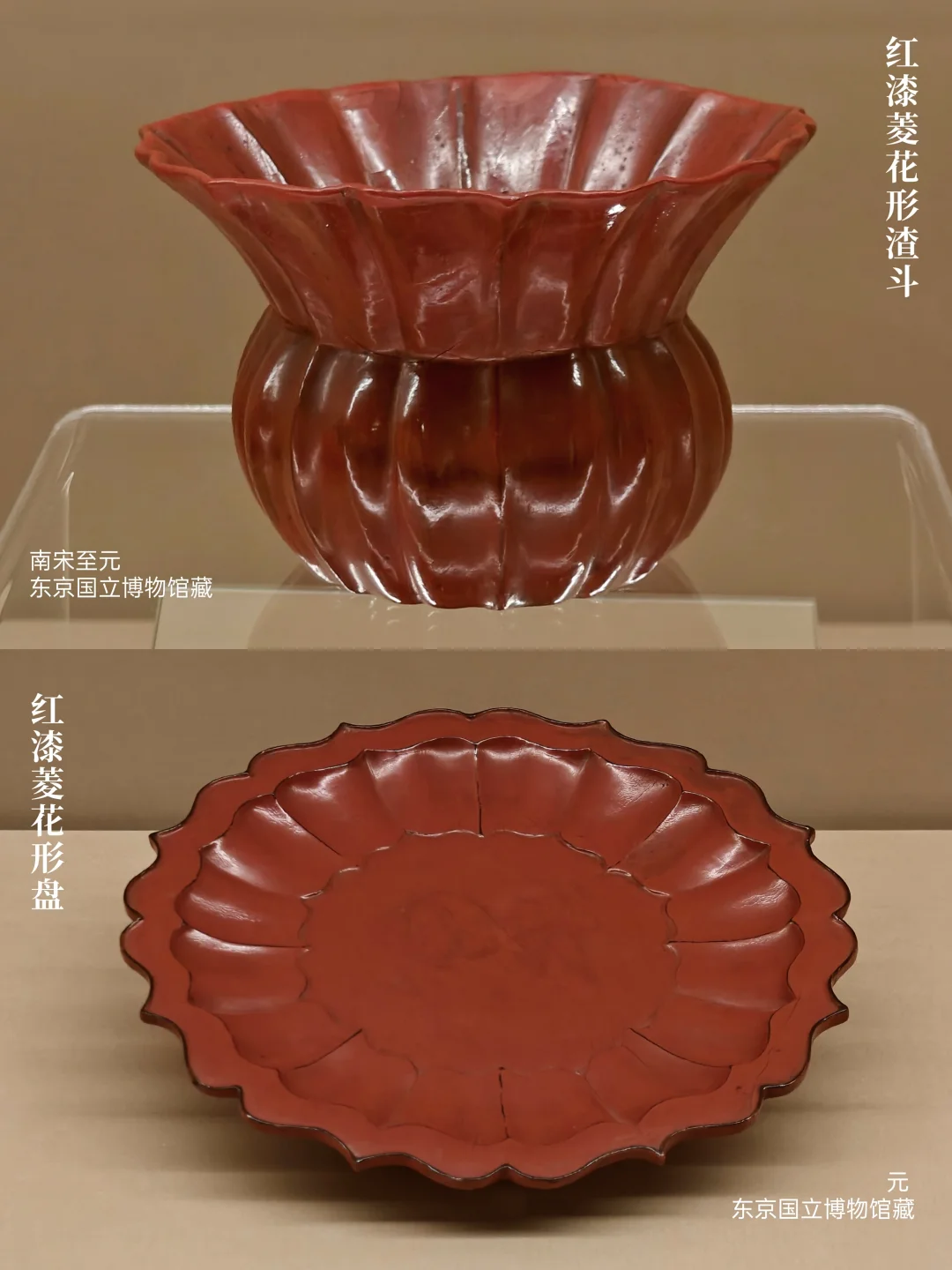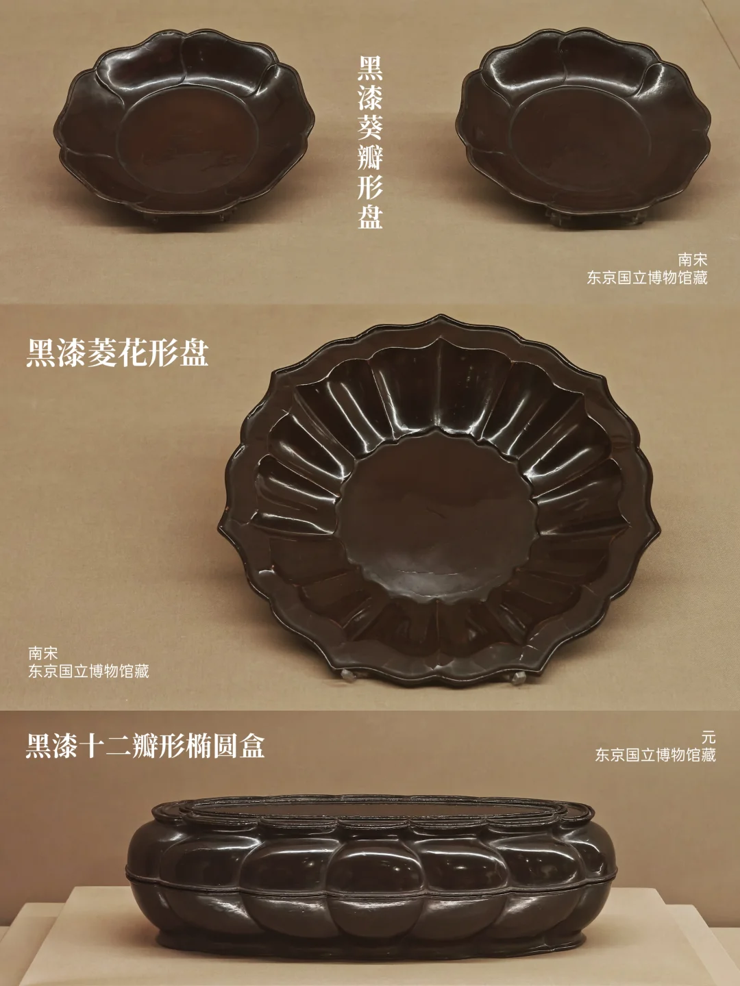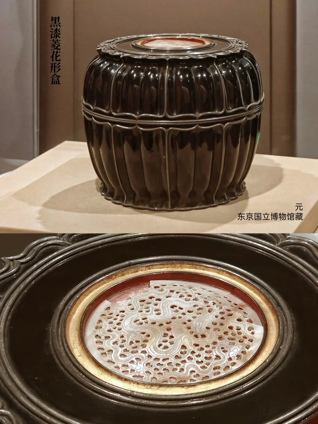 宋元漆器素髹蕞高水准的代表,纯熟应用圈叠技法。八瓣莲花形,分五层,高圈足,层间以子母口形式紧密扣合。