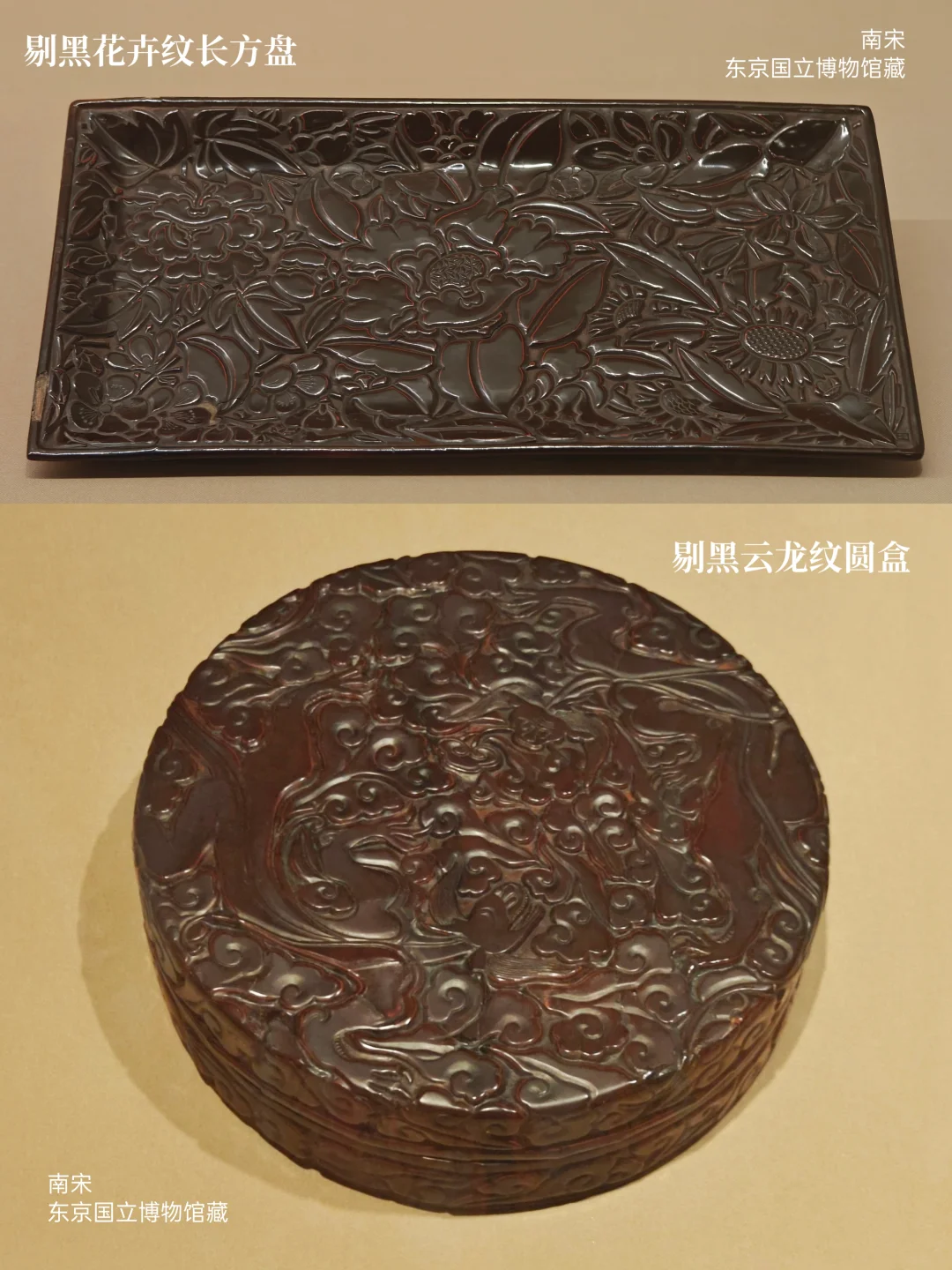 “异工互效”的代表作,戗划技法模仿金银器錾刻效果,剔黑技法模仿宋代金银器流行的锤揲高凸花工艺。