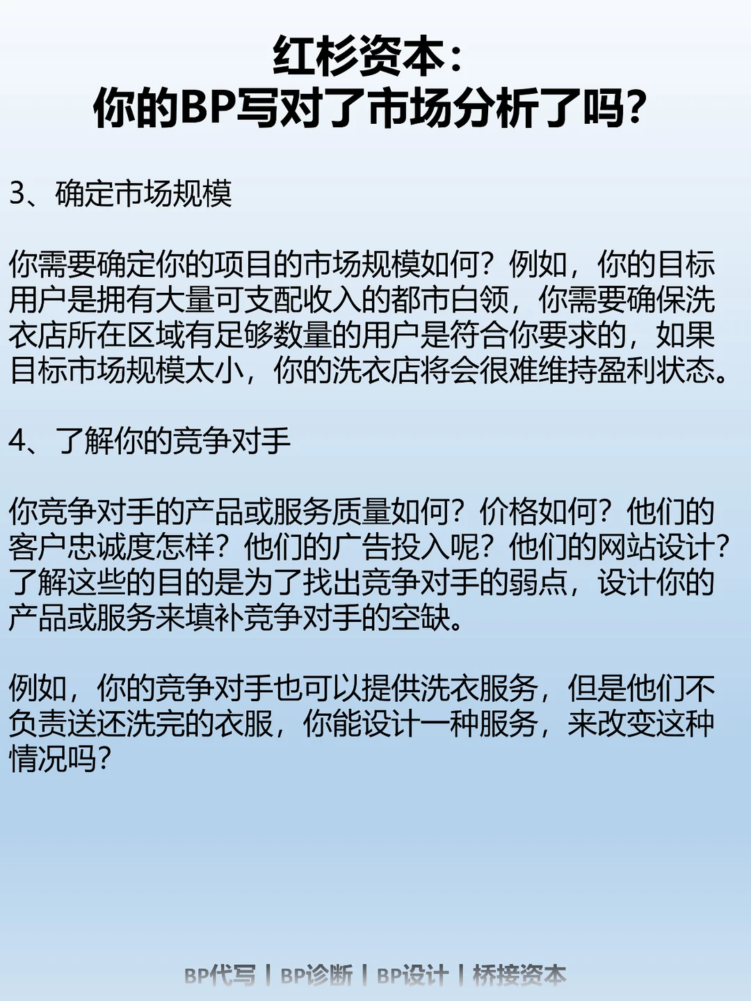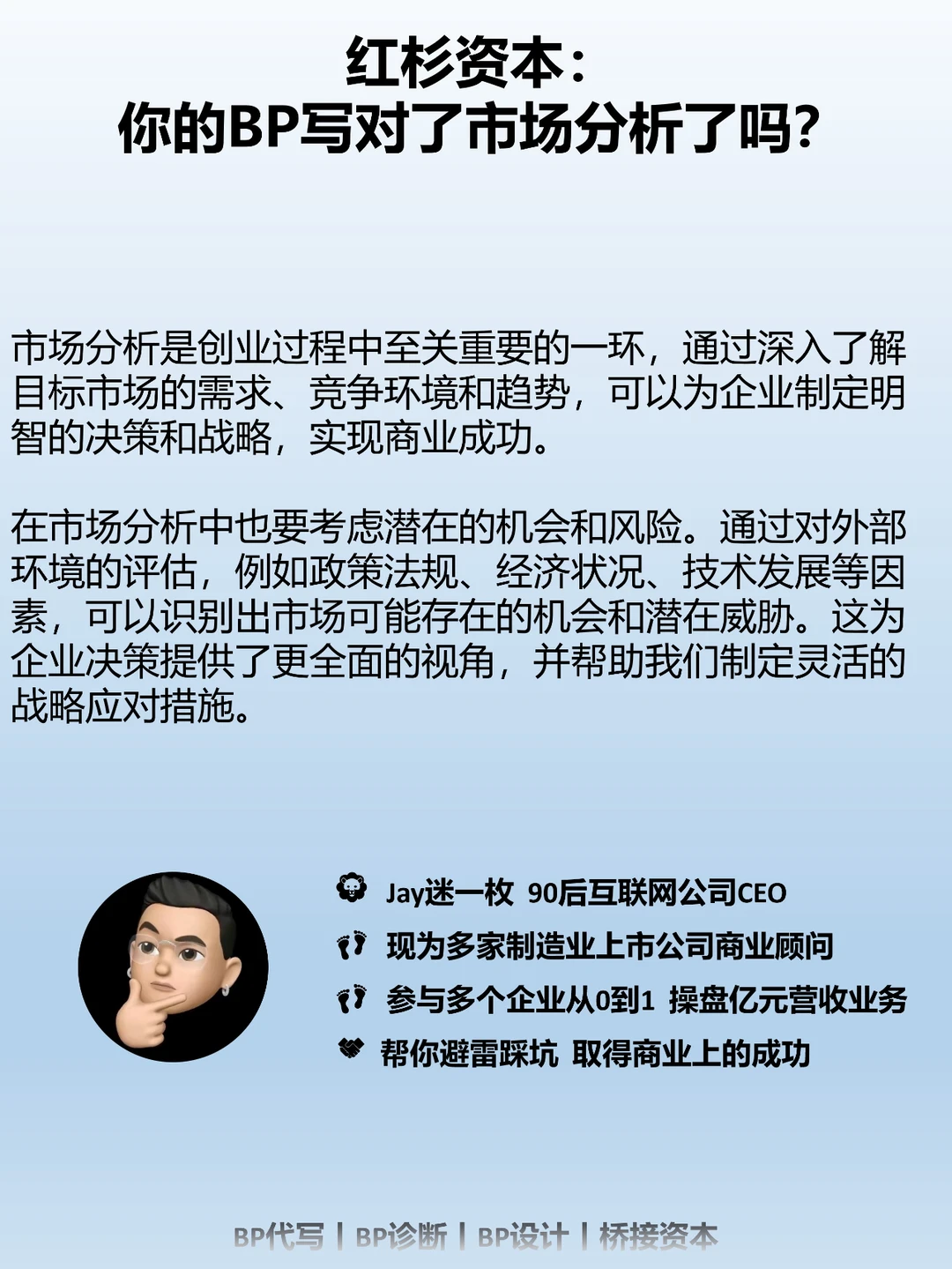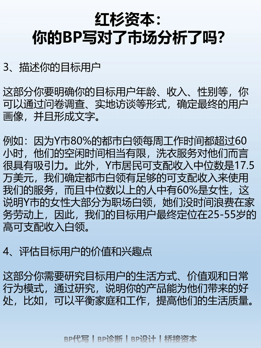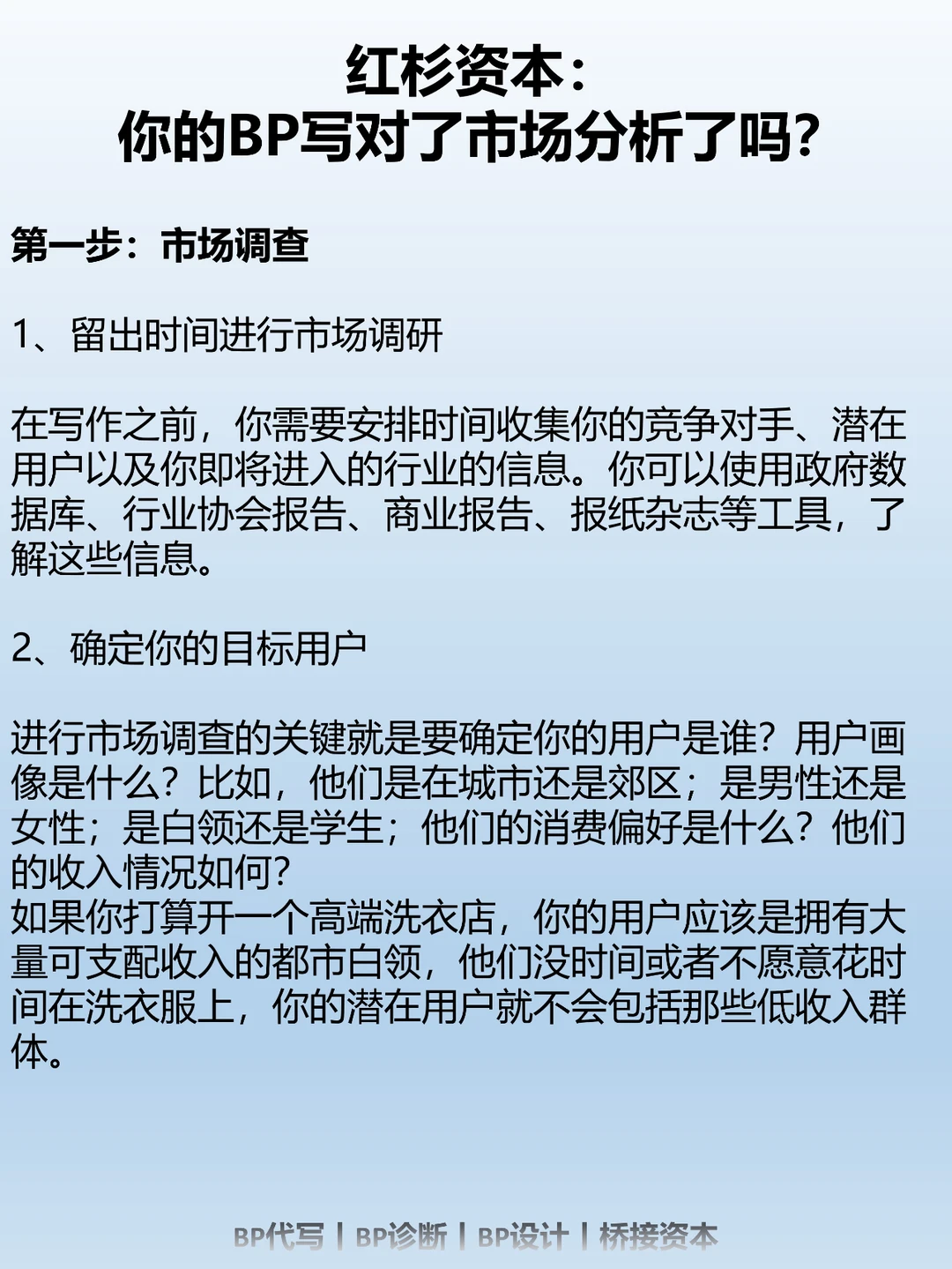 首先,需要对目标市场进行细致的研究,包括行业趋势、市场规模、增长率以及市场细分情况等。这样可以帮助创业者确定产品或服务在市场中的定位和潜在受众。