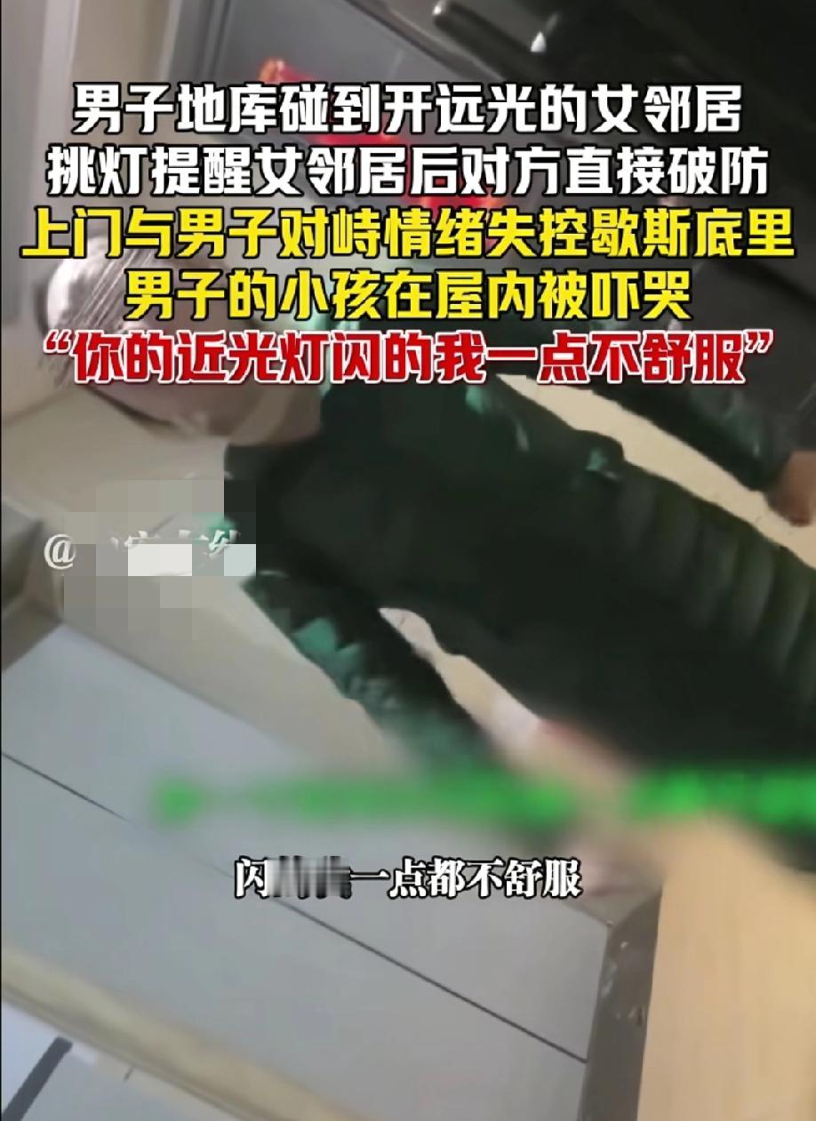 究竟是谁的错? 男子地库闪灯提醒开远光的女邻居 却反被女邻居上门质问,吓哭了男子的小孩。说到情绪激动时喊话男子,“你把我杀了吧!” 邻里之间抬头不见低头见,也不是什么大事,别人没和她计较,她自己认识不到错误,反而责备邻居,这样不讲理也确实让人气愤。 你们身边有这样的邻居吗?