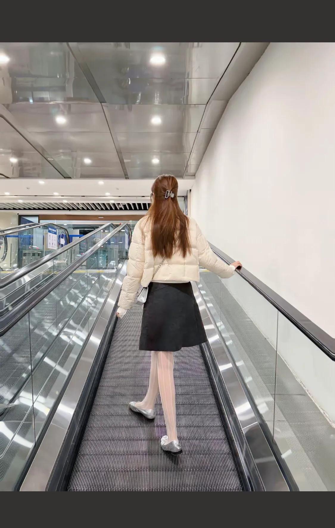 优雅出行,黑白格纹裙搭配银色高跟鞋,手提包点缀,自信满满!