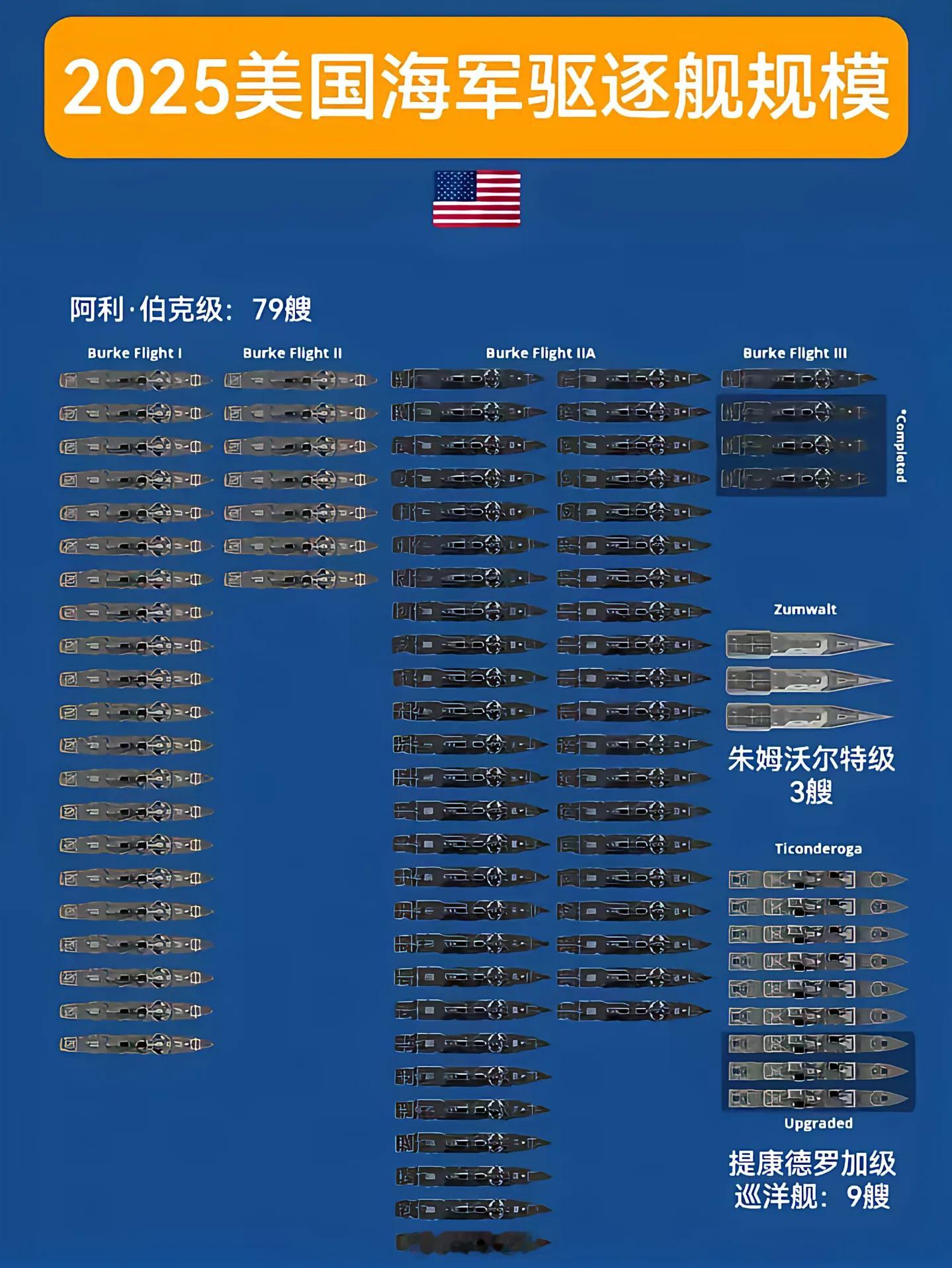 美防长说忽视中国军力愚蠢且失敬中美2025年驱逐舰规模对比。中45艘VS美91