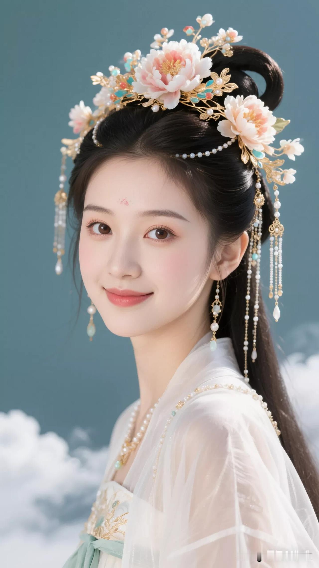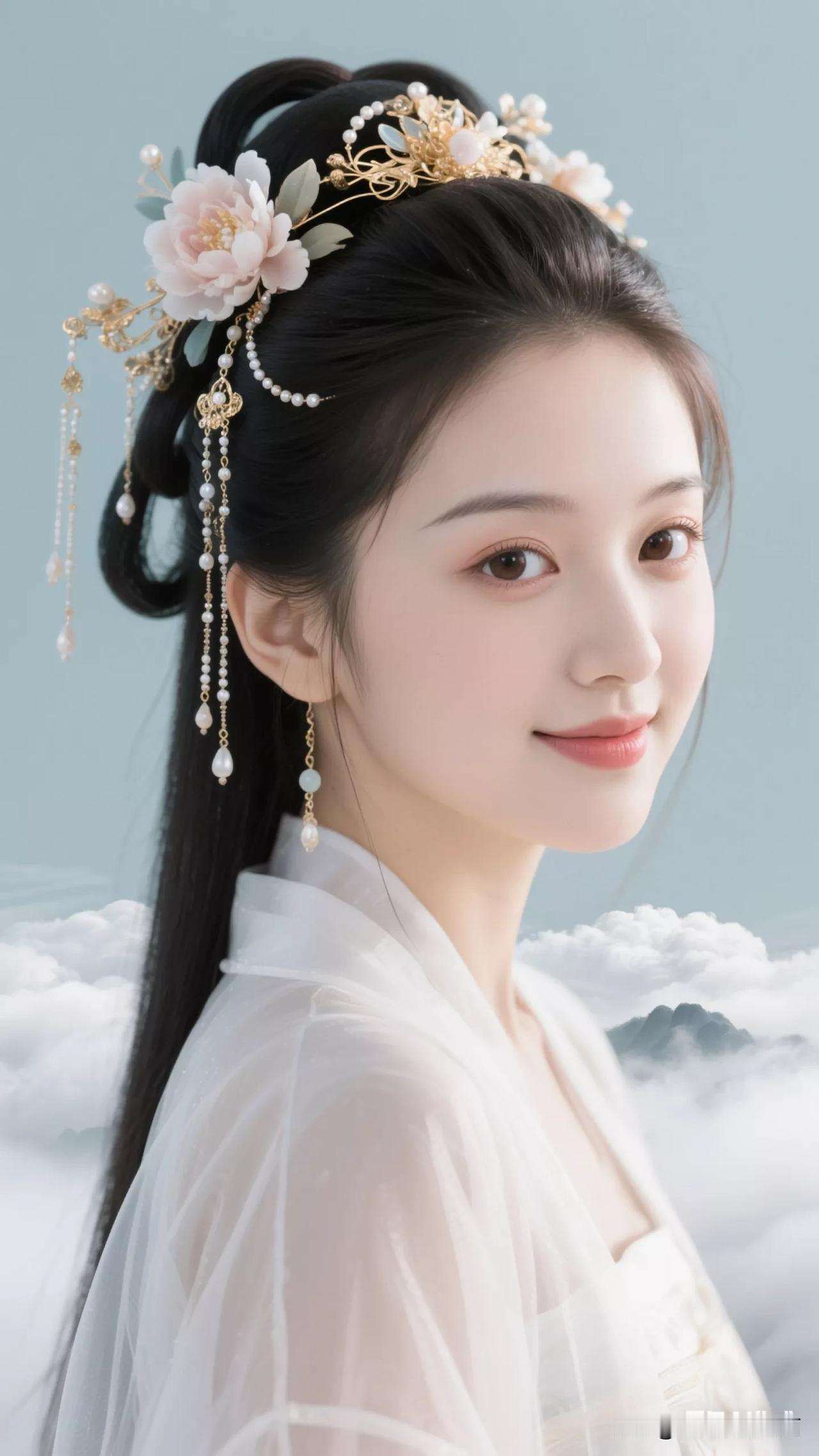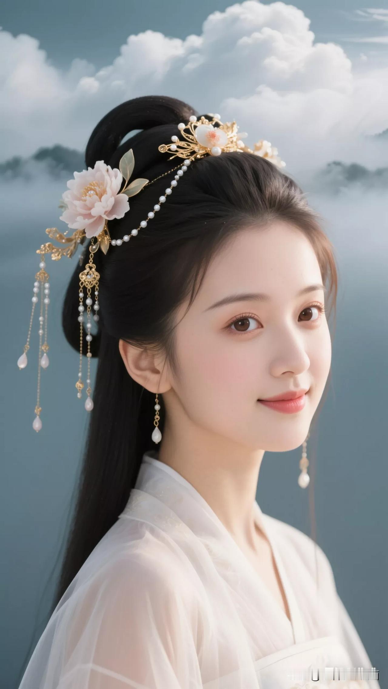 古风美人,云间仙子,花钿玉簪,宛如画中人。张立启原创书画AI作品古仕女发髻服饰集锦首发第660期 水墨国风发饰 国风花钿 菊饰古风像 花饰古风照 古意金鱼纹服饰 古景花钿图 水墨头饰 张立启国画 张立启原创书画AI作品首发