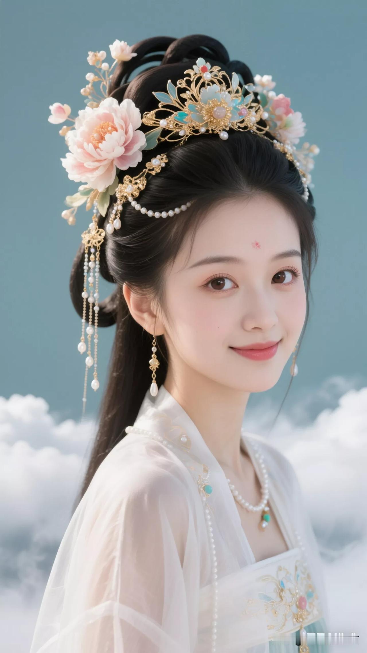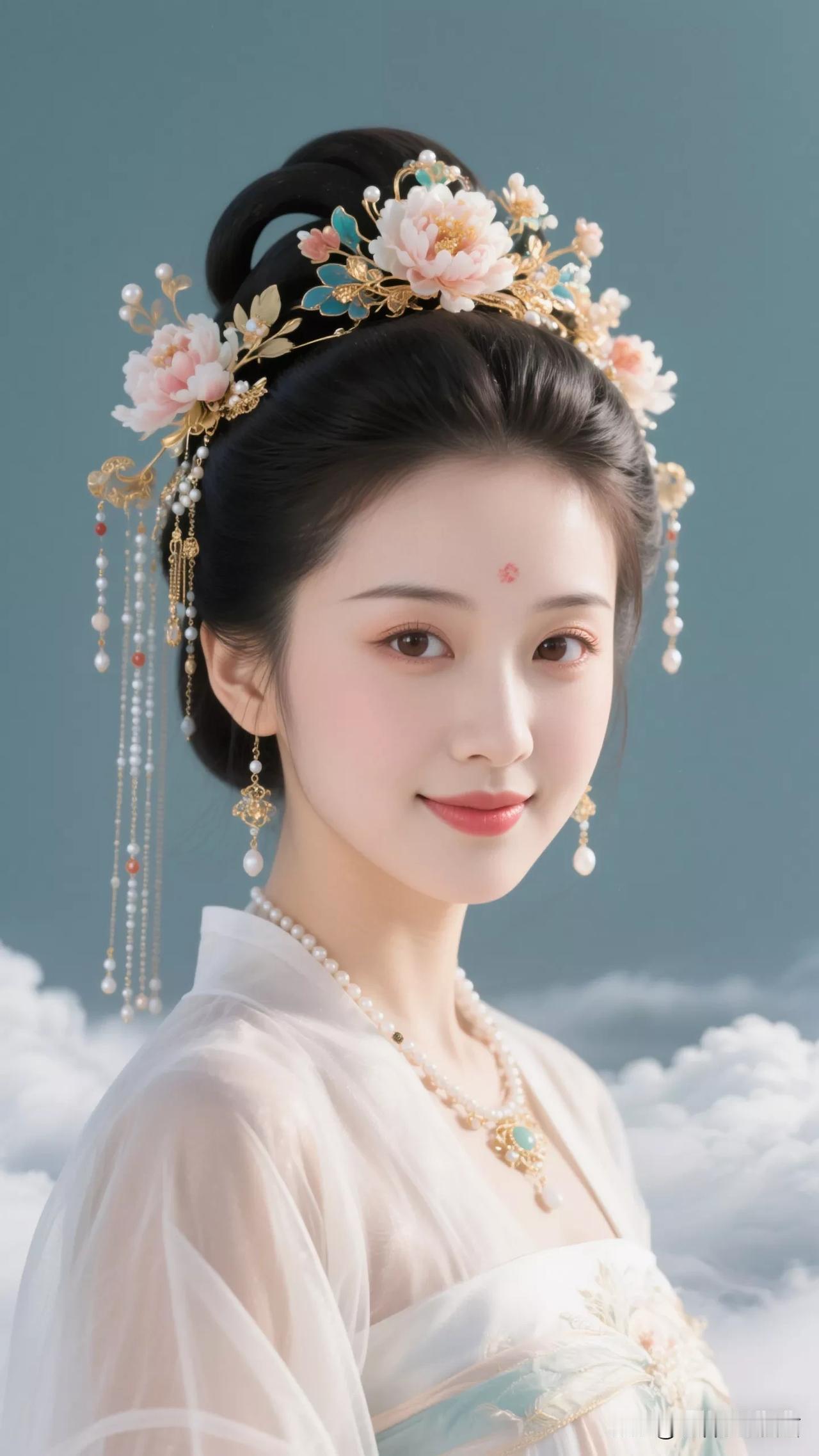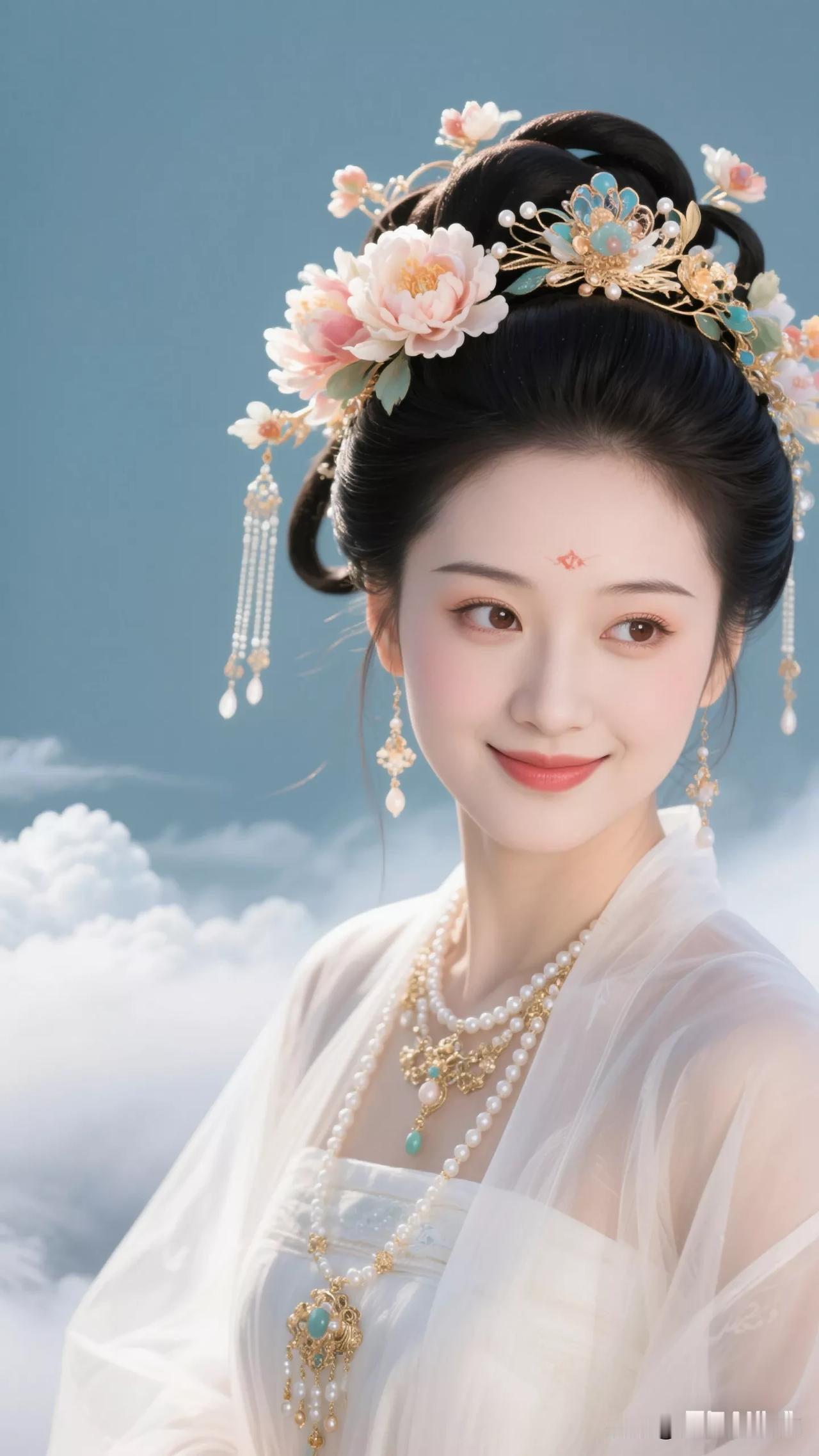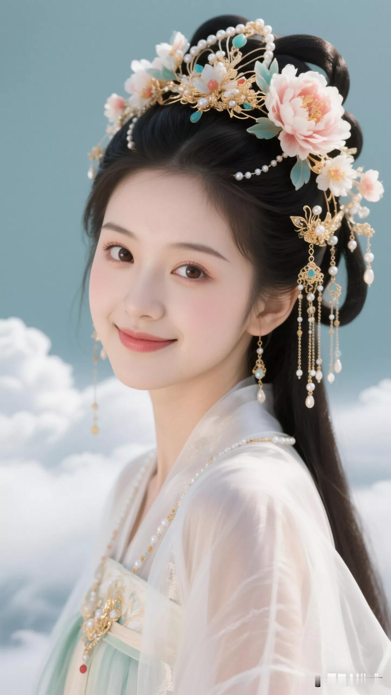 古风美人,云间仙子,花钿玉簪,宛如画中人。张立启原创书画AI作品古仕女发髻服饰集锦首发第660期 水墨国风发饰 国风花钿 菊饰古风像 花饰古风照 古意金鱼纹服饰 古景花钿图 水墨头饰 张立启国画 张立启原创书画AI作品首发