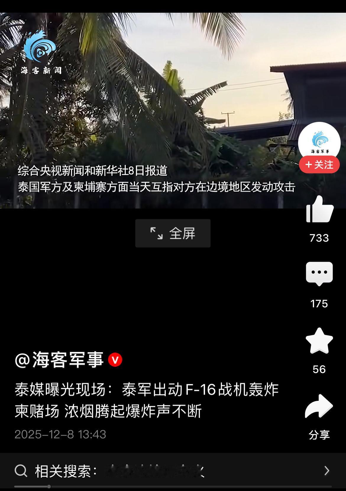 泰国柬埔寨烽烟再起,泰国空军F16战机轰炸柬埔寨赌场。 特朗普自吹自擂调停泰国柬埔寨冲突成功,这脸被打的啪啪的。 我们知道,俄罗斯在与乌克兰打仗,双方用导弹、无人机相互攻击。 我们也知道柬埔寨有电诈园,赌场,这一次泰国空军直接轰炸柬埔寨赌场,这是啥意思? 难道赌场在柬埔寨有重要意义? 俄罗斯、柬埔寨都是对我们友好免签的国家,既然有人号召去这两个地方旅游。 我想这两个地方的安全应该可以保证的。