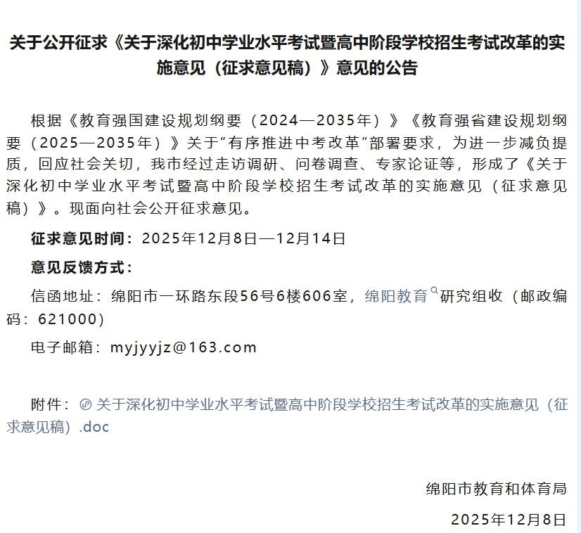 绵阳中考巨变!成都会不会跟进? 绵阳官方发布“中考瘦身”征集意见稿,2027年中考全面实行700分新制,地理、生物会考成绩不再计入中考成绩,你们觉得成都会不会跟进?中考志愿填报 中考 中考成绩 生地会考 绵阳中考 成都中考 成都初升高