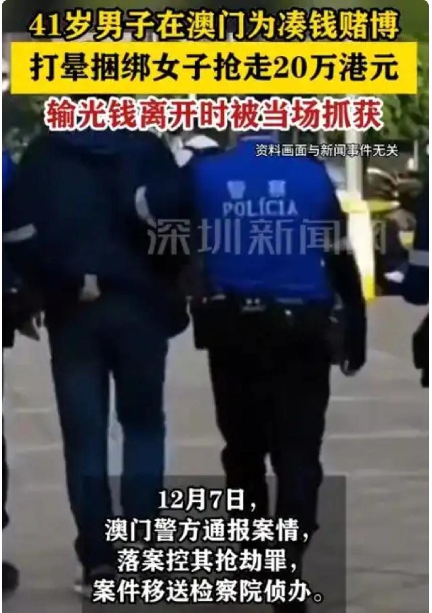 真的被澳门这个新闻震碎三观,为了回本连人性都没了? 41岁的内地大哥,在赌场输急眼了,居然盯上了刚凑桌的女赌客。 一路尾随人家进厕所,把人打晕了还捆起来,直接抢走20万筹码。 这都不算啥,最离谱的是他抢完根本没跑路,转身就回赌桌接着下注! 这心理素质是碳基生物能有的? 警察冲进来抓人,他还一脸懵圈在那装傻,非说自己啥都没干。 要不是路人听到厕所动静大,那女的指不定啥后果。 脑子里除了翻本啥也没了,拿着抢来的带血筹码还能气定神闲地押注。 这种人比恐怖片还吓人,谁遇到这种“亡命徒”真是倒了八辈子血霉。