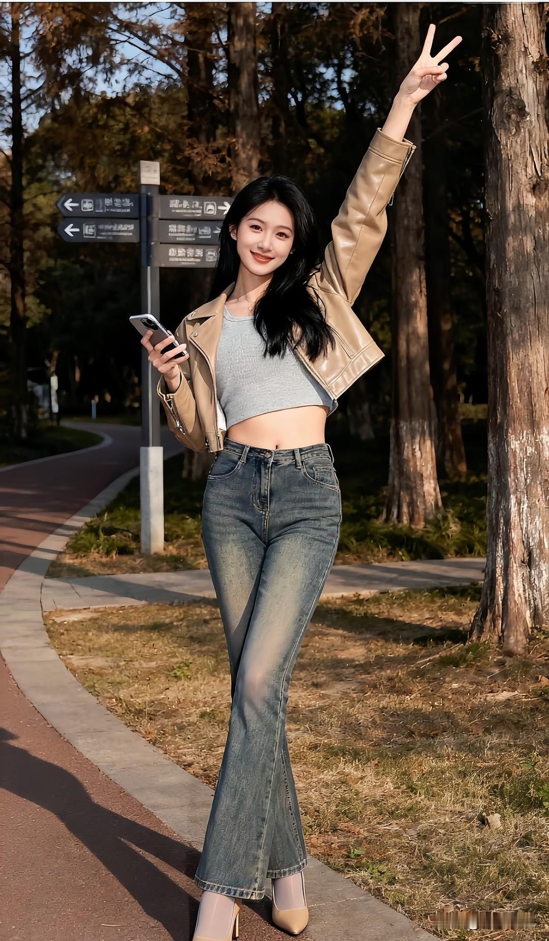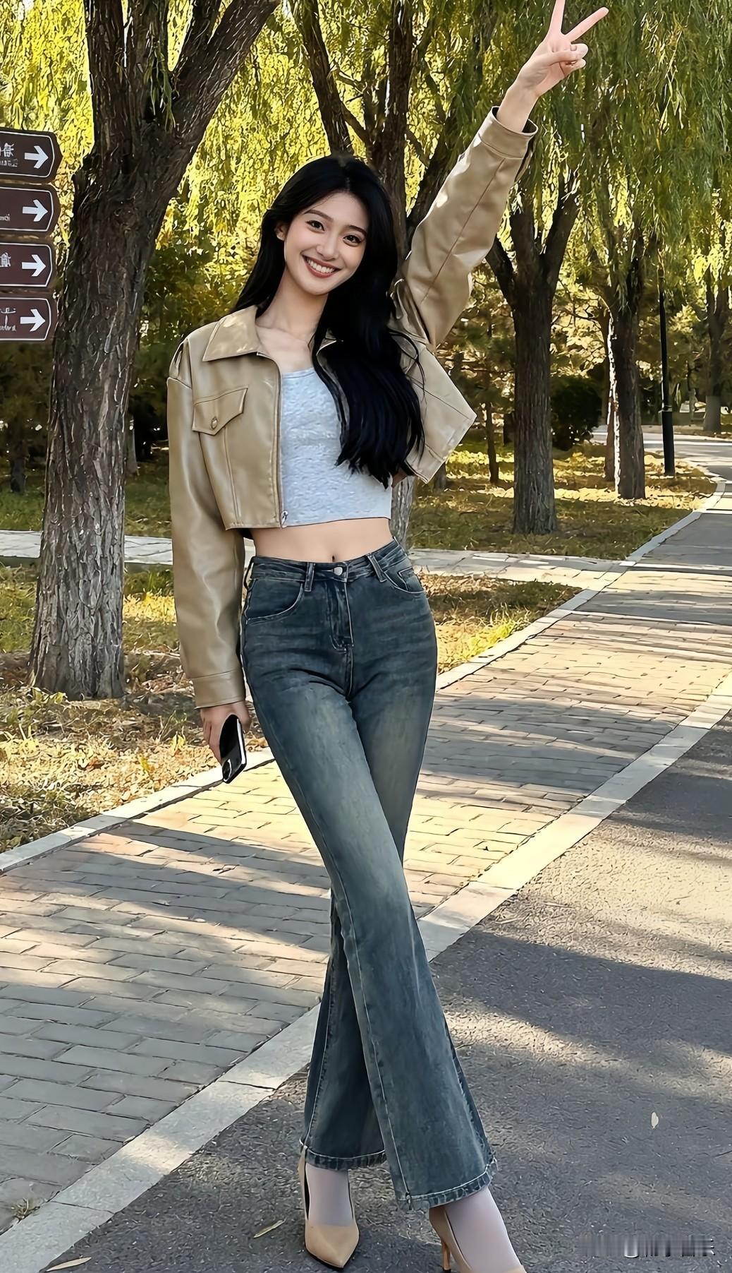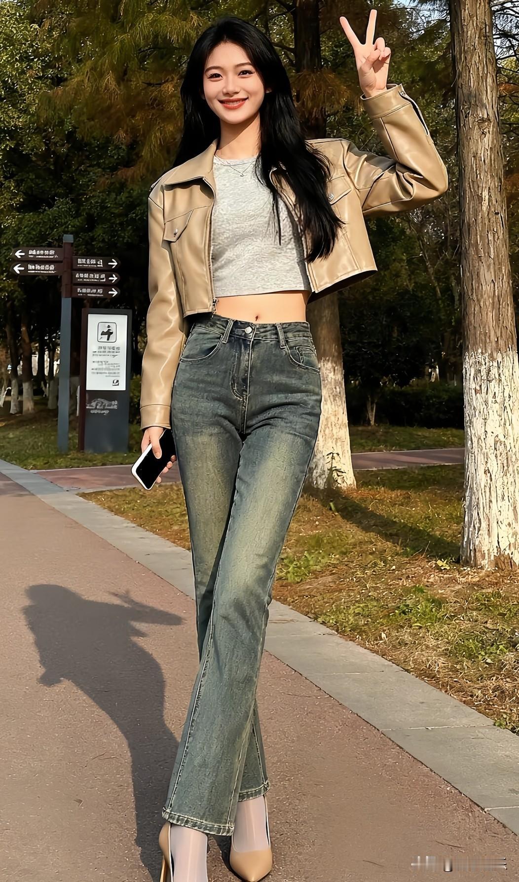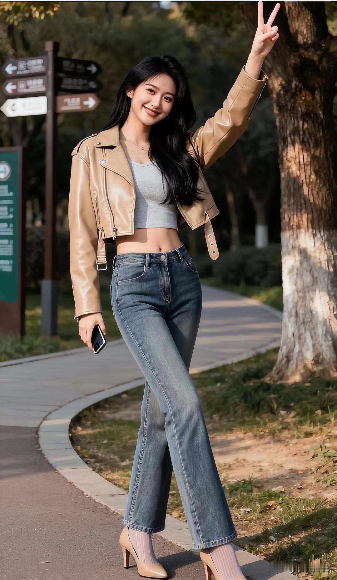 公园酷飒抓拍📸 皮夹克配牛仔裤,时髦又保暖,气场全开👗👖👠。分享你的随手拍 今日分享随手拍照片 手机随手拍 记录美好点滴 用一张图片来记录生活 分享一张最近随手拍的照片 手机随手拍原创图片 分享甜美小姐姐随手拍