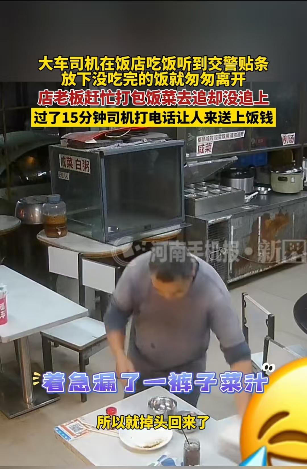 广西,大货车司机怕交警贴罚单,刚吃两口饭就开车跑了。店家看到后,赶紧把剩下的饭菜打包,开车追了上去,可追了一公里都没追上,于是返回了店里。过了十几分钟,一个小伙子来到店里,要为大货车司机付饭钱。店家这才恍然大悟:原来账还没付! 中午过了饭点,饭馆里没什么客人,方先生正擦桌子,门一推,进来个穿灰工装的大货车司机。 他满脸风尘,裤脚沾着泥点,往桌边一坐,声音沙哑地要了份炒面加青菜。方先生赶紧进后厨忙活,铁锅热油“滋啦”一响,家常的香味很快飘了出来。 司机吃得挺急,估计是饿坏了,刚扒拉两口,就听见外面有人喊交警贴罚单。他立马扔了筷子,抓起安全帽就往外冲,连椅子都带倒了。 方先生探出头,看见司机飞快跳上大货车,引擎一响,车子眼看就要拐上国道。 他盯着桌上冒着热气的剩饭菜,心里直犯嘀咕:跑长途的司机不容易,这一路不知道要开多远,饿久了低血糖犯了可就危险了。 这时候他压根没琢磨饭钱的事,也不知道司机付没付钱,只想着赶紧把饭送过去。 方先生随手抓了个打包盒,飞快装好转紧盖子,就跳上自己的小代步车追了上去。 他盯着前面大货车的尾灯,时不时按喇叭,可货车声音太大,司机压根没听见。 方先生跟着追了快一公里,眼看货车越开越远,拐进岔路没了踪影,才放慢车速停下,心里还盼着司机能早点吃上热乎饭。 回到饭馆,方先生把打包饭放在柜台,一边收拾一边念叨,跑长途的风里来雨里去,连顿热饭都吃不安稳,完全没提饭钱的事。 过了十几分钟,门又开了,一个小伙子拿着手机走进来,还在跟人通话,一进门就问方先生:“刚才是不是有个大货车司机在这吃饭?” 方先生点点头,跟他说:“是啊,他被交警贴条催着走了,我怕他饿,开车追了一路没追上,饭还在这打包着呢。” 小伙子笑了笑,说:“我是来代他付饭钱的,他怕没结账亏着你,饭不用带了,他说路上有服务区能吃热乎的。” 方先生这才反应过来,自己刚才追饭的时候,压根没考虑过钱的事,而司机却一直记在心里。 小伙子扫码付了十几块饭钱,说了声麻烦就走了。方先生看着手机里的到账提示,又看了看柜台里的打包饭,心里暖暖的,一股热乎劲直往胸口冒。 后来有人把这事儿拍成视频发出去,好多人都点赞评论。其实这事儿真不大,十几块钱的饭,一公里的追赶,十几分钟后的代付,全是普通人的小温暖。 方先生体谅司机的辛苦,满心都是怕对方饿肚子,不计较饭钱;司机惦记着没付饭钱,特意让人代付,不欠人情。 没有轰轰烈烈,只有真心相待。你体谅我的难处,我惦记你的善意,这就是双向的善良。这样的相遇,最是动人。 一、大货车司机怕贴罚单匆忙离店,店家为防司机空腹赶路,无偿打包饭菜追了一公里。 《民法典》第八条:民事主体从事民事活动,不得违反法律,不得违背公序良俗。 本事件中,店家无偿追送饭菜的行为符合公序良俗,是法律鼓励的善意行为,受法律保护。 二、大货车司机忘付饭钱离店,店家善意追送热饭,司机托人代付饭钱,双向善意暖人心。 《民法典》第六百二十六条:买受人应当按照约定的数额和支付方式支付价款。 司机点餐、店家提供饭菜,买卖关系成立,司机负有支付饭钱的义务,小伙子的代付行为履行了司机的付款义务。 对于此事,大家如何看?素材来源于河南手机报,2025年12月9日