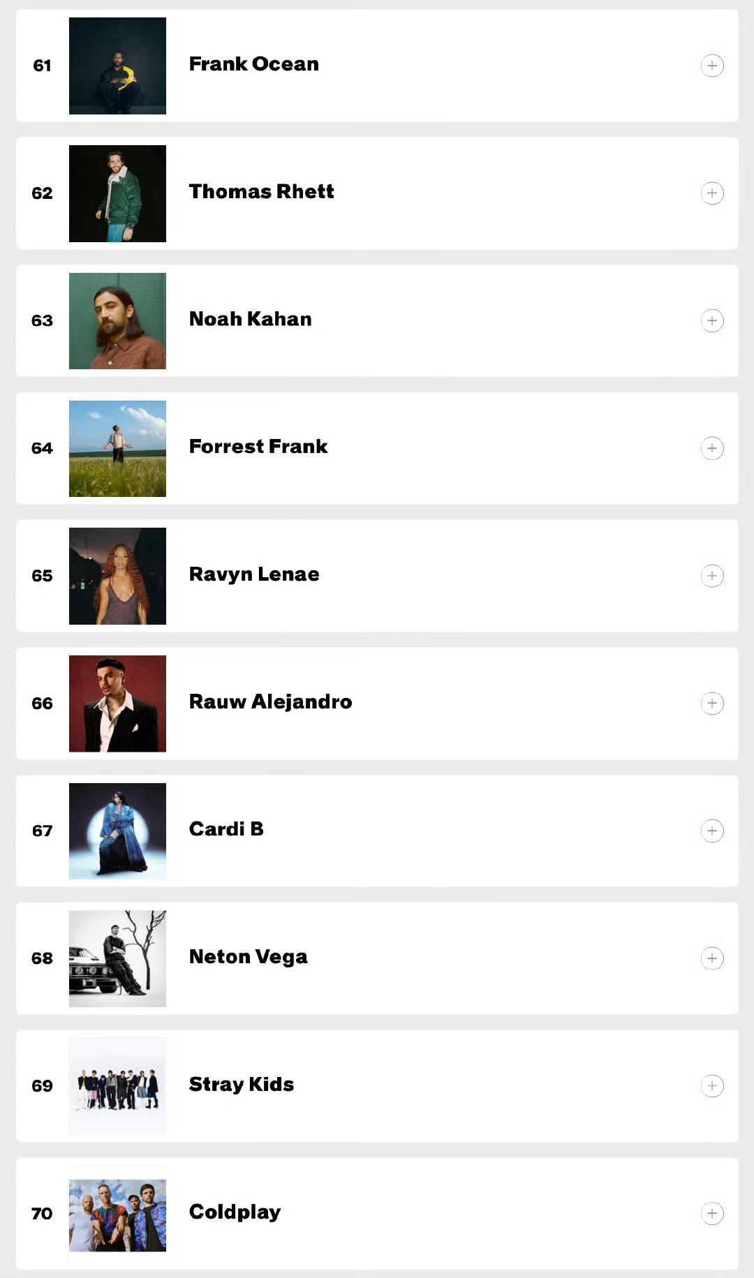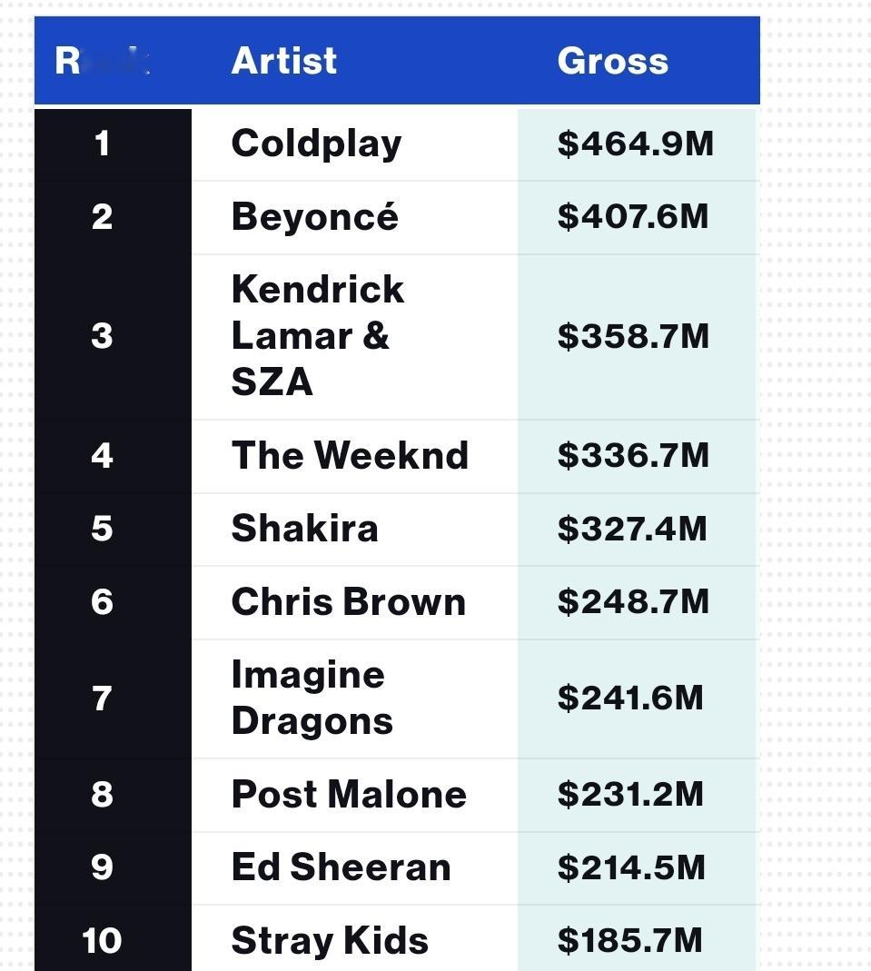 Stray Kids巡演票房年榜排名第十前十唯一kpop组合HOP和KARMA2025年世界专辑年榜包揽前二Stray Kids已连续三年拿下世界专辑年冠,连续两年获得年冠年亚2025 Year-End Billboard 200 Albums chart / 专辑年榜 Stray Kids专辑KARMA位列128 HOP位列1572025 Year-End Top Artists chart / 艺人年榜 Stray Kids排名第69!和HUNTR/X Saja Boys成为唯三上榜kpop组合!