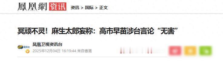 麻生太郎不装了,彻底撕下伪装,日本亮明底线:日本要对抗到底 最近日本政坛又出事了,麻生太郎突然站出来支持高市早苗的涉台言论,还说要对抗到底,这让人有点摸不着头脑,按理说高市早苗刚上任就惹了麻烦,按以往的惯例,应该赶紧压下去才对,可麻生不但不收手,反而推了一把。 这事儿没那么简单,高市早苗能站出来,全靠麻生撑着,她本来就是个门外汉,派系底子薄,安倍一走,权力空出来,麻生立马看出门道,推她当“女安倍”,好把安倍派的人收拢过来,再借着右翼的势头,把自己的路子拓宽一点。 可高市早苗一上台就惹麻烦,中日关系一下子紧张起来,按理说这对日本没好处,日本经济还得靠中国市场,可麻生这时候反而出来帮腔,八成是瞅准了日本国内最近反华情绪涨得厉害,辽宁舰在附近海域演习,日本战机被压得抬不起头,老百姓心里发毛,这时候摆出强硬样子,反而容易捞到选票。 石破茂最近总在媒体上骂高市,说她把日本几十年攒下的外交底子给毁了,可麻生偏偏这时候跳出来,明显有他的打算,高市要是扛得住,他就能借她的右翼班底往上爬,高市要是撑不住倒了,他又能接下她的地盘,顺手把中日关系缓和一下,装出一副讲道理的样子,这种两头都占的手段,麻生早年就干过。 对日本来说,现在最麻烦的不是别人,是右翼的声音越来越响,美国忙着南美那边,东亚一时顾不上,日本却在这时候想着扩军,跟中国较劲,这不等于自己往火坑里跳吗,真把中国逼急了,这些年攒下的经济底子,怕是一下子就没了。 麻生太郎这种人,心里想的从来不是国家大事,而是怎么保住自己的位置,高市要是下台,他能趁机上位,高市要是不走,他也能借机捞点好处,可到最后,吃亏的还是普通老百姓,日子一天比一天难,钱越来越不够花,要是再这样下去,连最后一点指望都没了。 现在就看中国怎么应对了,与其等着对方出手,不如趁美国忙别的时候,在东亚多做点实际的事,让日本那些想重走老路的人彻底死心,不然下次再冒出个更激进的首相,事情只会更难收场。
