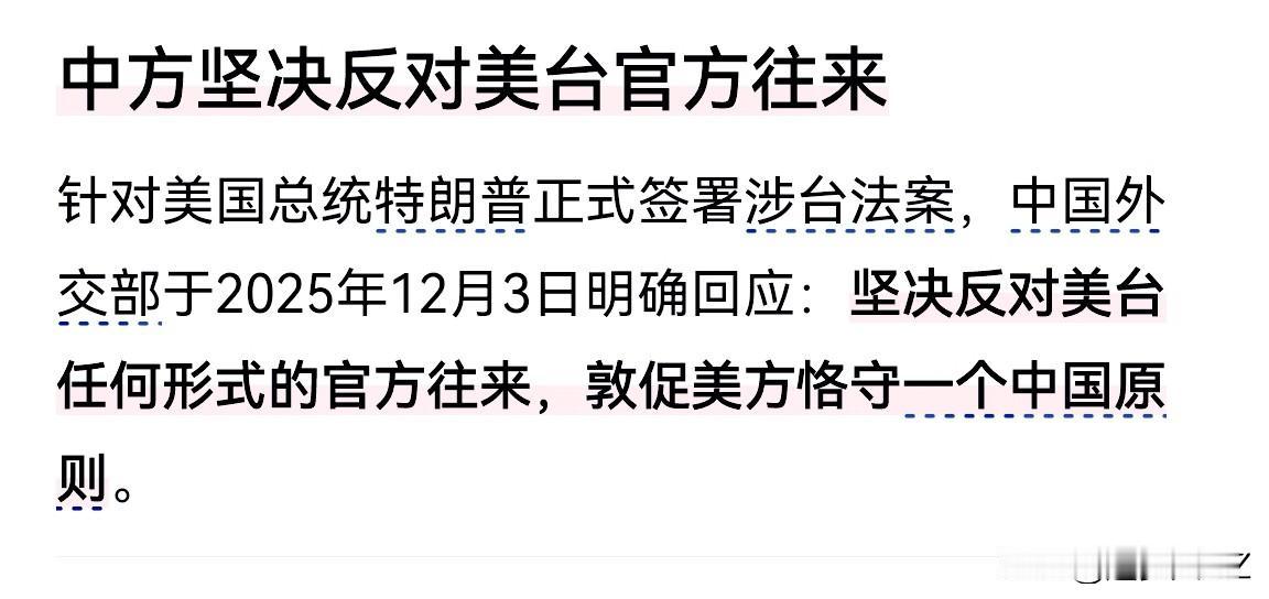 美对台“模糊”变“清晰”,特朗普公开出来挑衅一个中国原则,从幕后黑手走到前台。 特朗普正式签署涉台法案,允许美新政府同台独分子接触,就是美台官方可以往来,甚至美军武力干涉台海。 现在台海大趋势已定,我们收回湾湾回家是中国14亿人民的心声,不受任何外部势力干扰,美日白费心机。 台湾收回时间、方式、方法、手段…掌握在中国这边,特朗普签署再多的法案都是一堆烂纸,签的越多赖清德灭亡时间越早,美国霸权终结来的越快。 美国对台湾态度 国际观察今日热点 劲爆消息!