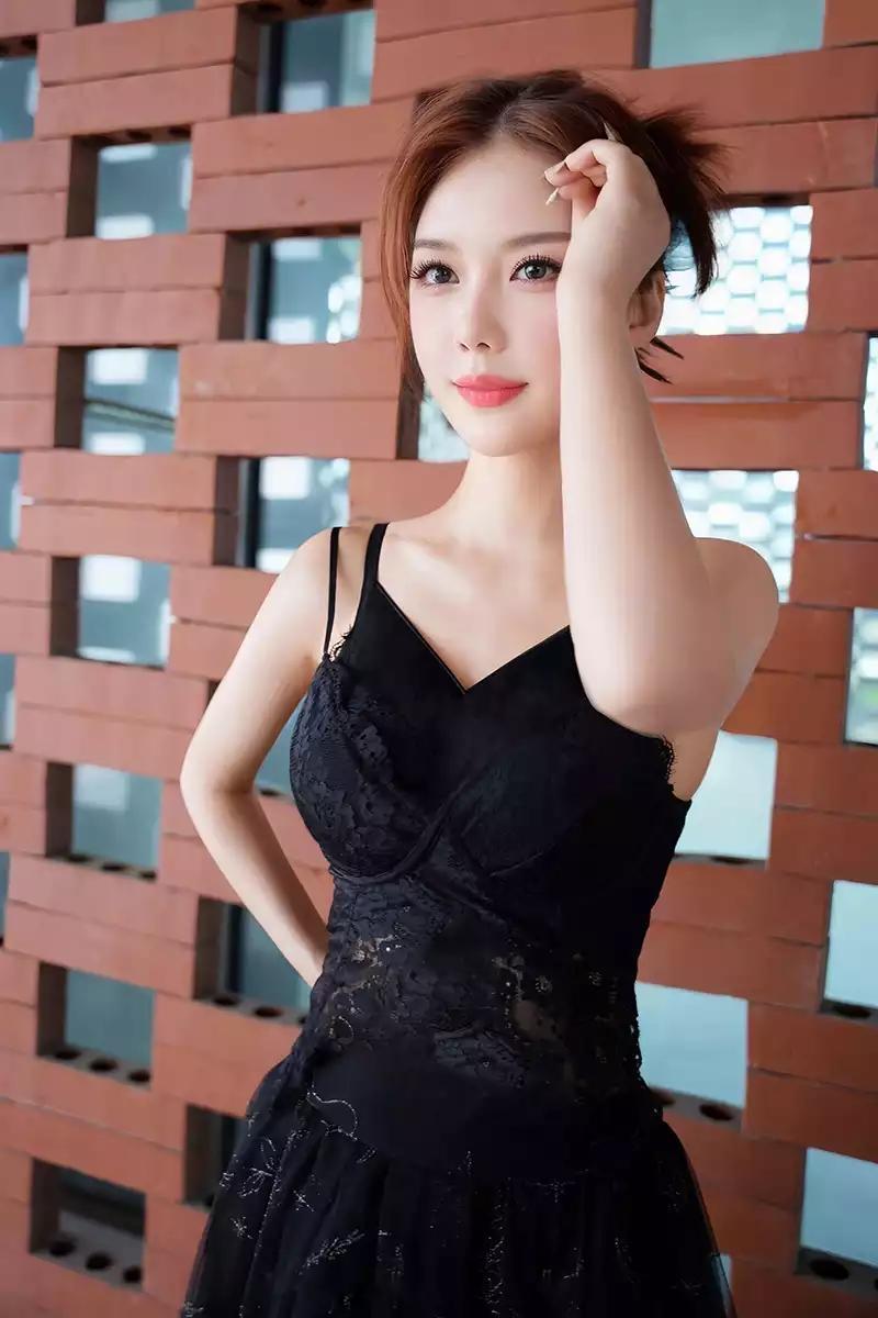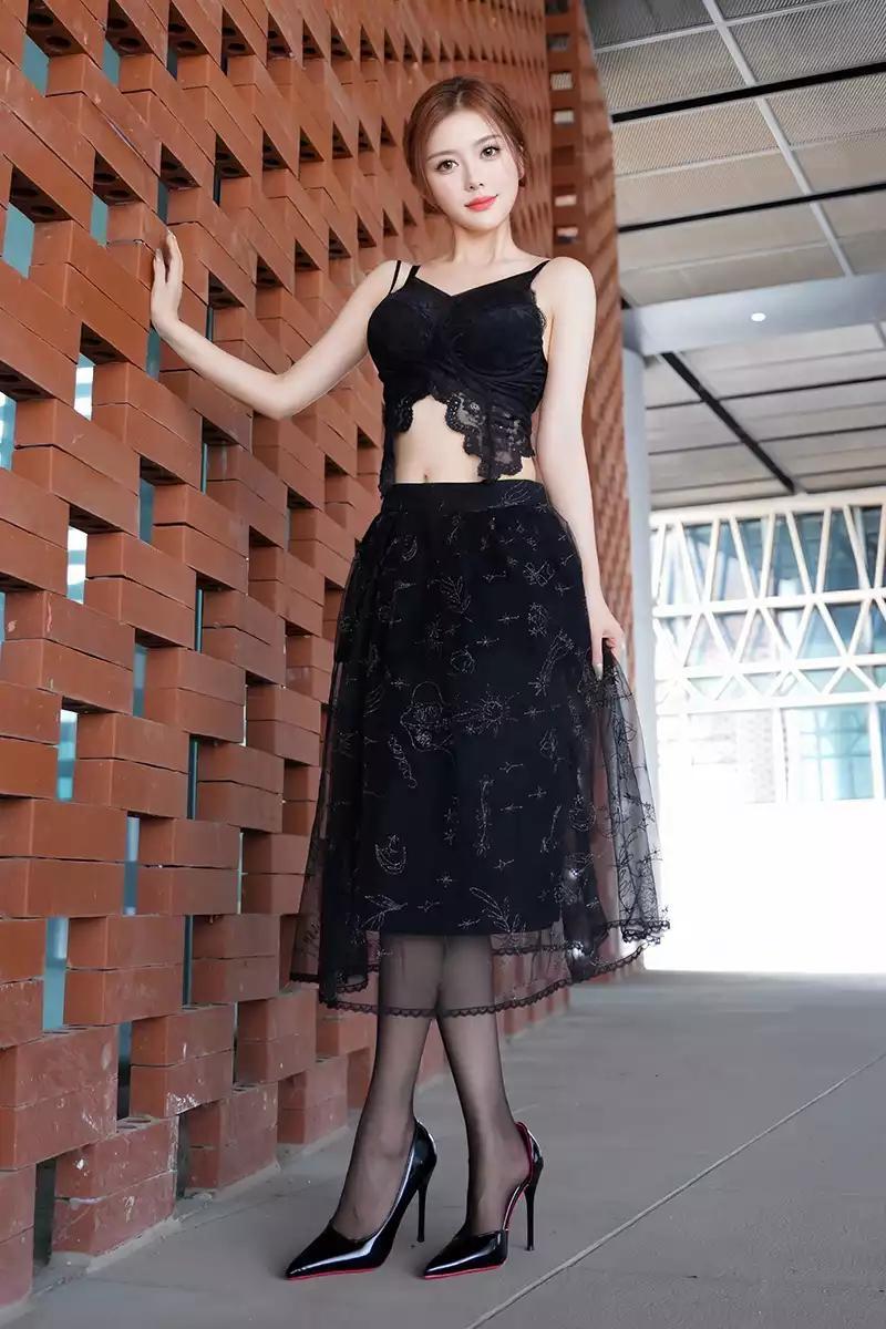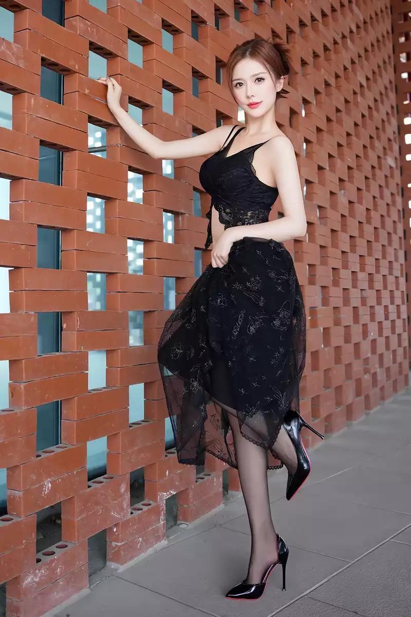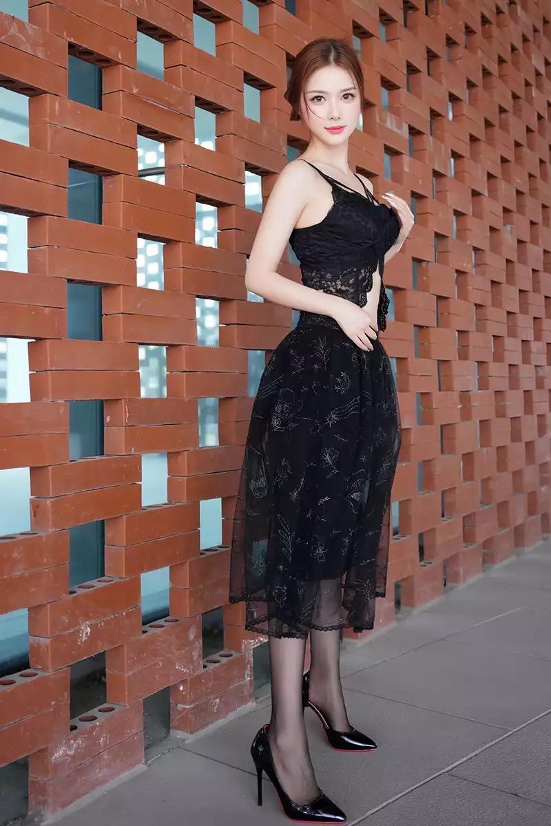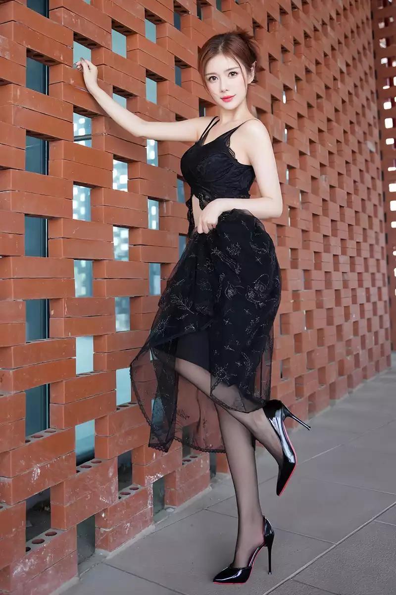 长腿模特赵语嫣黑色连衣裙写真图美女