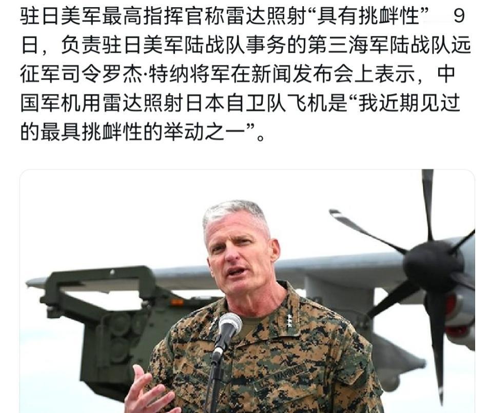 美国打破沉默,美国军方出来表态了!12月9日,驻日美海军陆战队的第3海军远征部队司令官罗杰·特纳表示,雷达照射“具有挑衅性”,在近期所见情况中,这一行为尤其具有挑衅性。很显然,对于本次中日之间的军事摩擦,驻日美军是一屁股坐到了日本一边。不过,驻日美军的表态却非常值得玩味。 驻日美军自二战后就扎根日本,现有88个基地、5万多人,冲绳一个县就挤着70%的驻军。根据美日安保条约,美军名义上是“保护日本”,实则是美国亚太军事网络的核心节点。 这次发声的第三远征部队,正是常驻冲绳、专门针对“离岛有事”的快速反应力量,特纳作为一线指挥官,其表态既符合美军对“区域稳定”的定义——即任何挑战美国主导秩序的行为都是挑衅,也暗含对中国军力增长的焦虑。 毕竟,辽宁舰编队带着055大驱前出西太,歼-15在自家演习区驱离抵近的日本F-15,这种“家门口的常态化威慑”,直接冲击了美军过去几十年在西太平洋的单向优势。 但美国的算盘没那么简单。就在特纳讲话前三天,国防部长赫格塞思刚在加州警告盟友“别搭便车”,暗示日本需将军费提到GDP的5%。 这种“一边撑腰一边要钱”的操作,暴露了美国的双重困境:一方面想借日本牵制中国,另一方面又不愿为盟友的冒险兜底。 历史上,驻日美军曾因钓鱼岛争端、台海局势多次被推到前台,但每次冲突升级时,美国都会刻意保持模糊——2024年美军陆战队开始向关岛转移,2025年新设太空军司令部却只派10人,这些动作都在表明:美国要的是日本当“前沿打手”,而非让自己陷入直接对抗。 日本的尴尬在于,明知美军表态是“有限支持”,仍不得不配合,根据日方公布的对峙细节,12月6日当天,F-15战机在辽宁舰150公里内反复盘旋,干扰舰载机起降,这种“擦边球”战术过去屡试不爽,但这次歼-15用间歇性火控雷达锁定,31分钟的“可感知威慑”让日本吃了哑巴亏。 驻日美军此时发声,看似声援,实则是给日本划红线——可以挑衅,但别玩脱,否则美国不会下场。这种态度在历史上早有先例:2010年钓鱼岛撞船事件后,美国一边说适用安保条约,一边压日本释放船长,避免冲突失控。 更深层的矛盾在于驻日美军的“双重属性”,对美国而言,这些基地既是遏制中国的桥头堡,也是控制日本的枷锁。 冲绳民众抗议美军犯罪、基地搬迁扯皮二十年,日本政府却不敢彻底得罪美国,因为驻日美军的存在,既是“保护”,也是监视——防止日本重走军事自主道路。 如今日本想借中美博弈松绑,2024年刚调整防卫政策,2025年就碰了硬钉子:中国用雷达照射证明“家门口的事我说了算”,美国用“掏钱”警告“别想白嫖保护”。 这场表态的微妙之处还在于时间点。2025年是驻日美军重组关键年,陆战队开始外迁,太空军刚成立,美军亟需展示“威慑存在”。 特纳选择在中日对峙升温时发声,既是对一线部队的“打气”,也是对中国的战略试探——看看中方在“家门口”的反应底线。 而中方通过外交部驳斥、军方划明“一线部队约束”,既表明立场,又避免被美国拖入舆论战,这种“斗而不破”的节奏,恰恰是美国最不愿意看到的,因为它打破了美军过去“拉偏架”的如意算盘。 说到底,驻日美军的表态,是美国亚太战略“低成本博弈”的缩影:用盟友的领土争端维持军事存在,用模糊的安全承诺榨取经济利益,同时避免卷入直接冲突。 但随着中国海空力量的常态化前出,这种“离岸平衡”越来越难维持——日本发现美军靠不住,美国发现中国不吃吓,而驻日美军基地,正从“优势资产”逐渐变成“战略包袱”。 这场看似简单的表态,实则是三方力量此消彼长的写照,未来的东海,怕是更难“风平浪静”了。