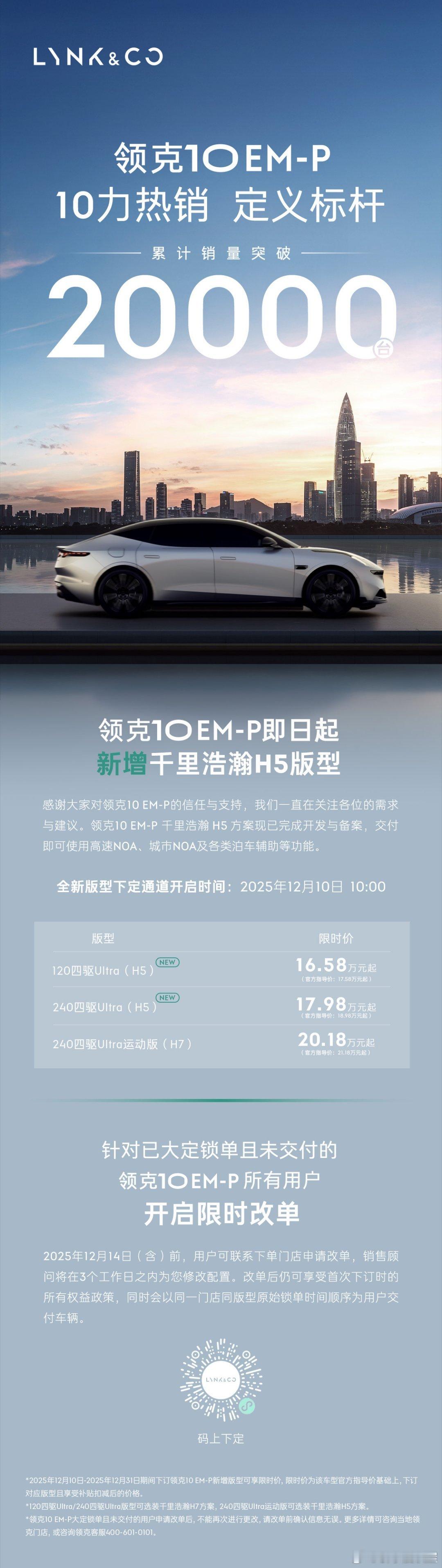 领克10EM-P销量快速突破2万高价值混动轿车首选领克10 EM-P用两个月达成两万销量,在竞争激烈的市场里切入了核心地带。这背后是产品综合实力与清晰定位的成功,打破了该市场原有的固化格局。销量突破后,立即扩大辅助驾驶方案的选装范围是个关键动作。将高阶方案的体验门槛降低,下放到更主力的版型,这是对用户需求的直接回应。相较于配置固化的车型,这种灵活的策略更贴近用户的实际决策。两万台的里程碑,是市场对其“高价值”定位的集中验证。当销量基数形成,其后续的用户口碑与市场声量,将更有力地影响这个细分市场的演进方向。