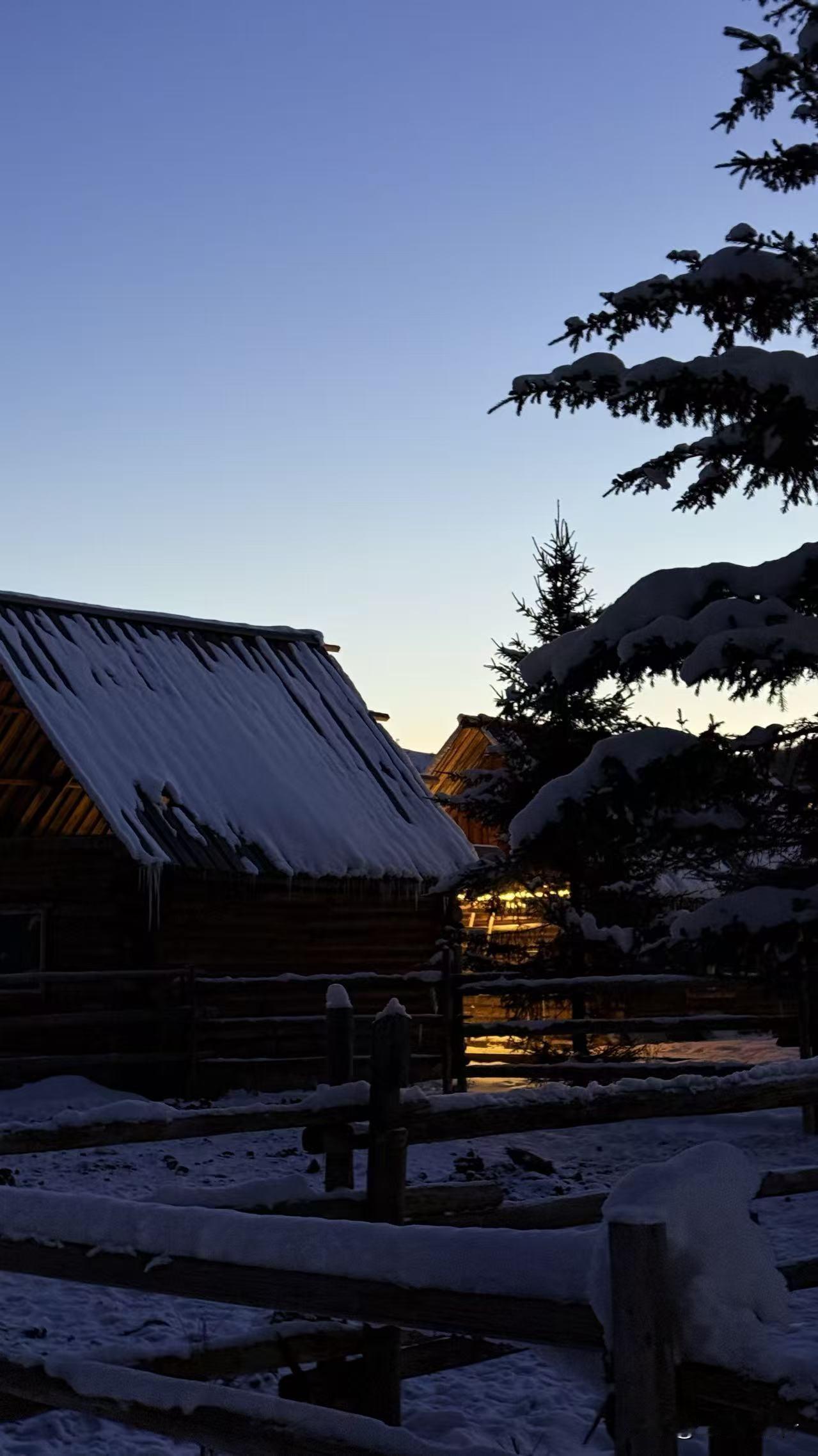 禾木雪乡:坠入冬日限定童话 当大雪席卷禾木,整个村庄便坠入了一场晶莹的梦境。 漫天飞雪簌簌而下,给错落的木屋披上蓬松银装,袅袅炊烟在雪色里晕开朦胧的暖。踩过厚雪的脚印蜿蜒向远方,松枝沉甸甸地坠着积雪,风一吹便簌簌落下碎玉般的雪沫。 天地间只剩纯白与静谧,没有喧嚣纷扰,只有雪落的轻响与炊烟的温柔。这一刻,仿佛闯进了安徒生笔下的童话世界,连时光都忍不住放慢了脚步。
