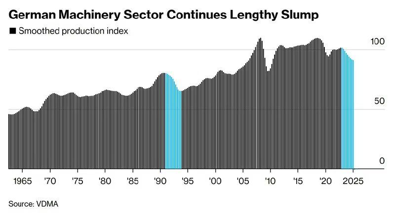 据Bloomberg报道,德国制造业连续三年下滑,这是自1990年代初德国经