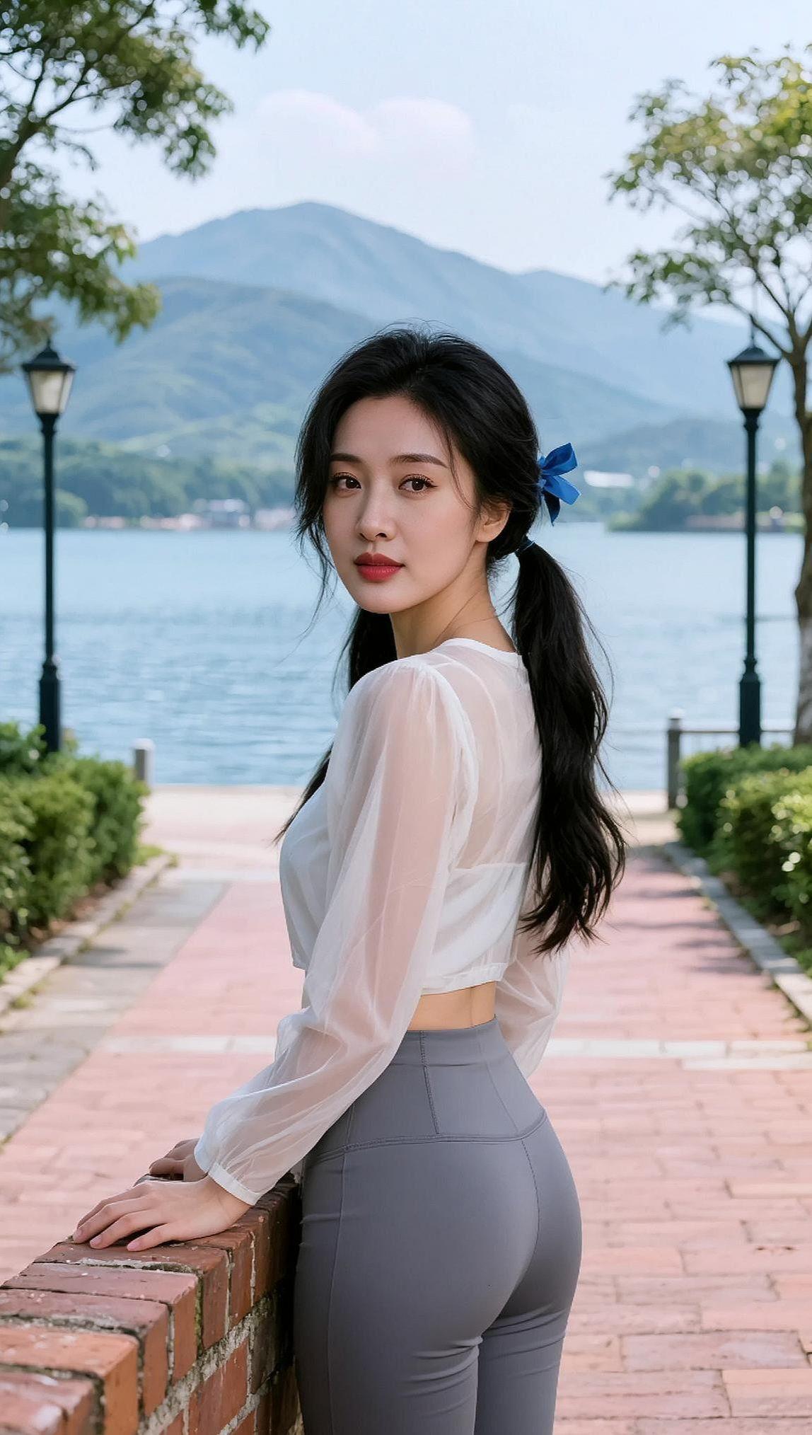 AI湖畔清新照抖音ai创作颜值在线自然美景美照
