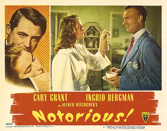 《美人计》所渲染的爱情场景(尤其是其中那惊世长吻)以及最后暗藏杀机又不落窠臼的结尾段落,无疑值得大说特说一番。《美人计》这部片子最大的优点是将丰富的感情世界与希区柯克娴熟的悬念控制以及“麦格芬”相连接,糅合在一起,这种将人物感情线索与影片悬念故事线索紧密结合又不落俗套的做法确实很出色。值得一提的是影片中英格丽·褒曼扮演的“女特工”时而坚定,时而机智敏捷,时而又孱弱的性格表现的非常充分外露,在这一点上也看出了她作为优秀演员的高超素养。 片子讲述的是女主角因为父亲是特务而心存芥蒂,此时加里·格兰特饰演的男特工Dev想让这位女儿去巴西完成一项秘密任务,调查敌方正在研制的秘密武器,并委身于她前夫身边。当然这种电影到这里大家肯定也能猜出个大概,肯定是敌方的阴谋没有得逞,而男女主人公也是良缘一对的大团圆结局。像这种大家都能猜出结果的电影哪里还有悬念可言呢?希区柯克就有办法让你看的目不转睛,明知结果却依然为其担心和好奇。片子里最经典的情爱场面是男女主角在露台上长吻45秒的镜头,希区柯克为了避开所谓的“三分钟接吻禁忌”而采用了多机位拍摄的手法,虽然俩人的嘴并未贴上,可是通过一系列的情话观众似乎感觉到俩人在激烈拥吻。这段镜头在现在看来没有什么,但是在上个世纪40年代末的好莱坞这绝对是惊人之举,不亚于《飞屋环游记》里的“黄金四分钟”之于我们的心理影响。俩人接吻的整个过程并不因为意外的电话打搅而断开,始终保持身体的紧密接触(心理学认为看情侣的关系如何,关键看他俩的胯部的距离)。 影片后半部的情节主要讲述的是英格丽·褒曼到前夫家“复婚”以后的生活图景,一方面他要尽可能的监视前夫以及其同僚们收集情报,另一方面她还要装作若无其事表面和谐,同时她还要压抑心目中对于加里·格兰特所饰演的男主角的爱恋。希区柯克不愧为是悬念大师,他知道如果平铺直叙,这段情节非常无聊。于是就安排进了一个偷酒窖钥匙的情节,酒窖也就成了通向解开谜团的关键点。这段情节很有张力,英格丽·褒曼从屋门看到了隔壁屋的钥匙,那是前夫的钥匙串,同时镜头给了一个稍远的主观特写。进而切入英格丽·褒曼的表情,可以看出她既兴奋又紧张,而时常切入的前夫的声音,似乎让人感觉这偷窃行动充满危险和未知。此时镜头给梳妆台上的钥匙一个全屏幕特写,随后英格丽·褒曼从钥匙串上卸下攥在手里。就在这时前夫换好睡衣出现并且直接伸出双手,这时是四只手的特写,观众的心一下提到嗓子眼,观众知道钥匙就在褒曼的手里。此时机智的女主角一把搂住前夫的脖子佯装亲热,她本想让钥匙倒一下手,可是却不慎掉落!就在这千钧一发之际,她用脚把钥匙踢到了床下(脚和钥匙的特写,随后是褒曼轻松的表情)。很多观众认为这样的动作当时根本不可能做出来,事实上也确实如此,不过通过镜头的剪辑,观众在看电影的时候可是想不到的,因为这时观众已经被悬念所吸引。这就是观众知道,而角色不知道的希氏悬念。 紧张的蒙太奇过后便是一个长镜头,家庭派对的时候一个高拍镜头从上到下环视一圈最终落在了褒曼背在身后的手心上,钥匙就在这里。这个很富有希区风格的长镜头也是这部片子的经典镜头之一。进入酒窖并意外获得铀矿是影片中另一个叫人倒吸一口冷气的情节。这个情节中有一个很重要的地方就是他们俩必须秘密行动,不能让任何人知道。当然这样的情节希区柯克从来不会顺利安排,家庭聚会上香槟一瓶一瓶的减少,恰恰就在俩人去酒窖调查的时候,观众开始揪心,因为一旦香槟消耗完了,前夫就要亲自领着管家到酒窖来拿酒。留给他们俩调查的时间不多了,偏偏就在这时一瓶“酒”不小心被加里格兰特弄碎了,如此让人揪心的情节怎么不让人心跳加速?不过还好任务顺利完成,可是英格丽褒曼却败露了,前夫一家人想通过给她慢性毒药的方式毒死她。当然,明察秋毫的男主角发现了女主角渐渐虚弱,便在她奄奄一息之际及时赶到,最后撤离的场景也是让人揪心的。男女主角能否顺利离开,前夫能否给他的上司一个交代,这些都在结尾段落中被放大的表现了出来。尤其是最后那种类似于欧亨利似的结尾更是引人无限的瞎想和深思。 《美人计》在情爱场面的处理上还是有点问题的。首先褒曼要去当卧底,并给男主角表白,这段表白有点唐突和过于直白。而加里格兰特的反应也过于平淡,虽然而后的肢体语言和长吻,稍微弥补了一些,但从合理性角度考虑还是欠妥。对于其中反面人物的描写,也就是“前夫”的描写让人觉得太过于痴情了,以至于痴情的自我牺牲,既可悲又可叹,不过这也正反映了希区柯克对于反面人物注入同情和合理性的特征。同时这个前夫具有明显的恋母情结(都五十多岁了还有这个情结),因为他对于女性的过于信赖也是可以找到心理学依据的。但是在片中这样的侧面提示并没有起到多少作用,毕竟并不是所有人都有心理学基底。