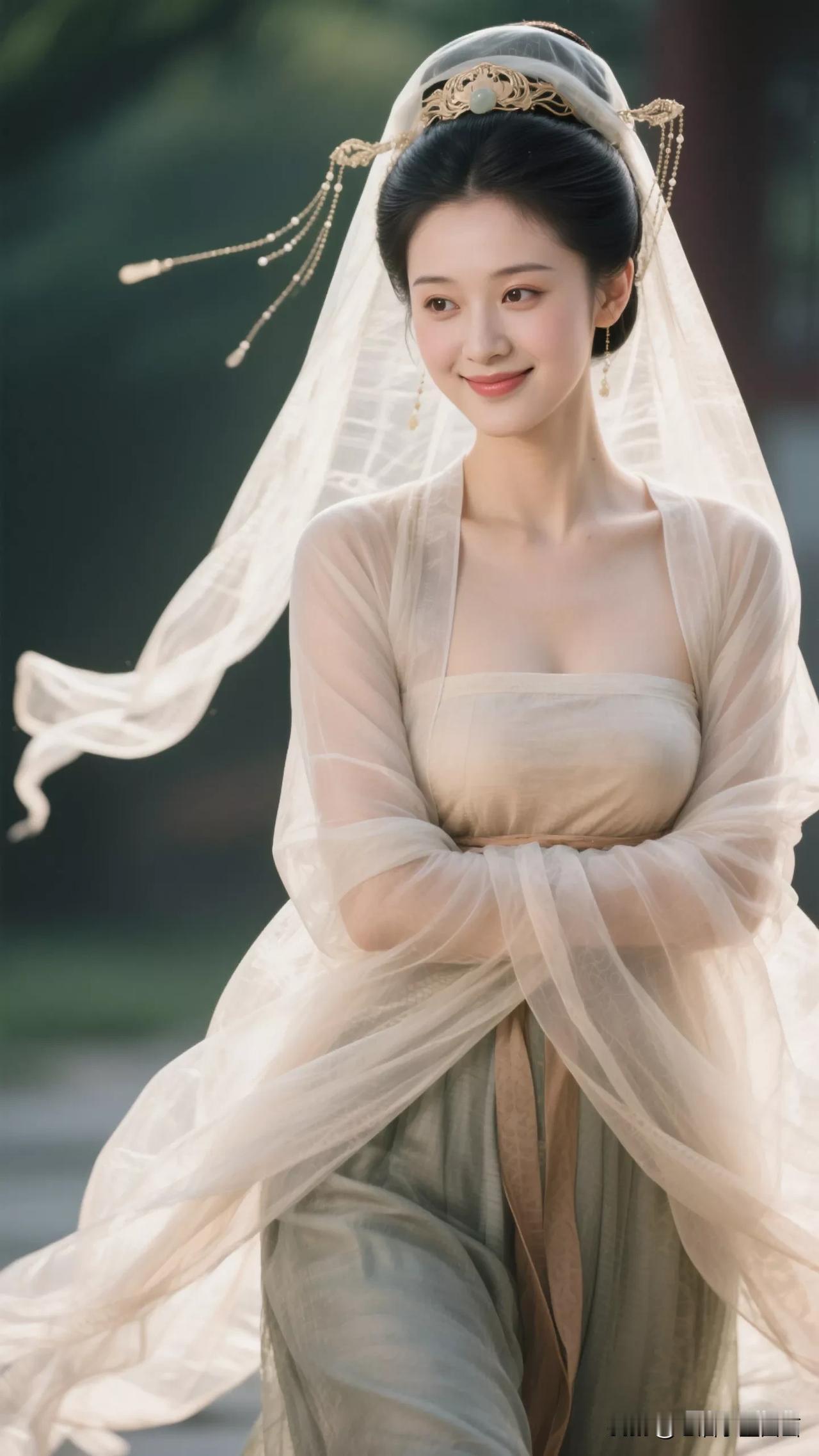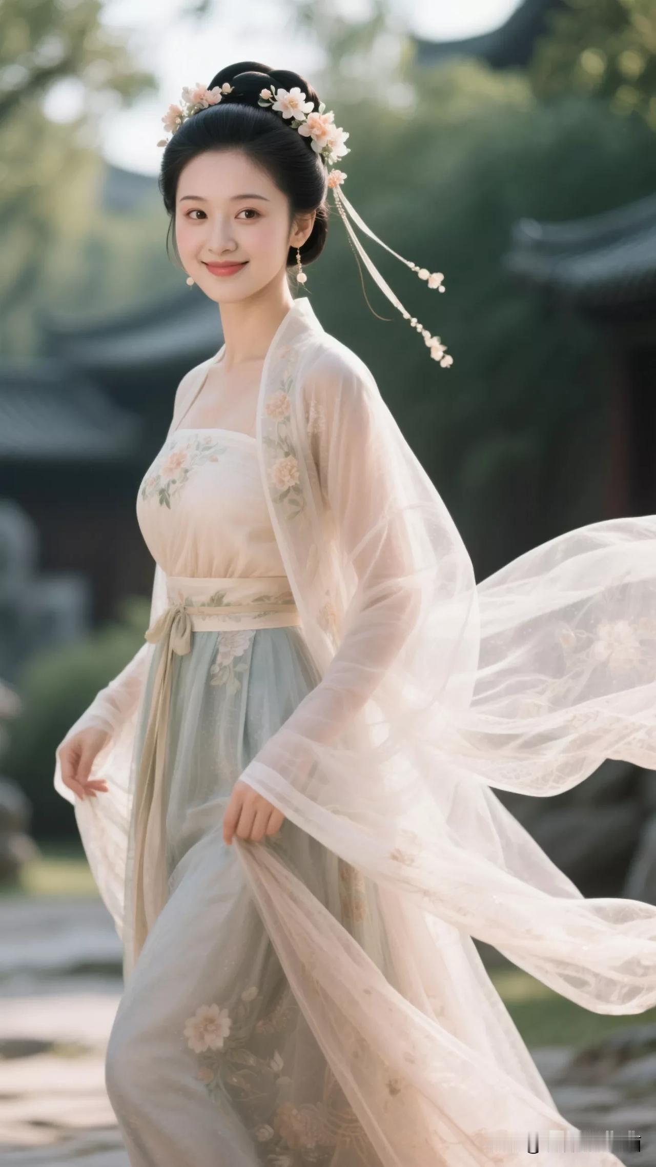 古风美女,笑靥如花,轻纱飘逸,宛如画中人。张立启原创书画AI作品古仕女发髻服饰集锦首发第661期国风古代美人 中式古风美人 国风中式美人 墨风汉服美女 ai唐韵仕女照 淡雅古风人像 古风式美女 中式气质女孩 张立启国画 张立启原创书画AI作品首发