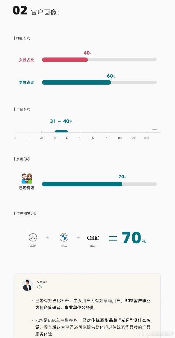 近日,有媒体发布了新款享界S9首批用户画像,据调研数据显示,31-40岁的社会中坚成为购车主力,约70%为已婚有娃家庭、超40%为女性车主。值得注意的是,其中超过七成用户来自BBA车主的增换购。对他们而言,传统豪华品牌的光环正在淡去,转向选购实用性、情绪价值更足的新豪华科技轿车。调研显示,新款享界S9华为乾崑智驾ADS 4、豪华舒适的内饰、优雅大气的外观是核心购车因素,其次是全新升级的尊界同源底盘、超长的续航及快捷的补能,以智能科技为核心的强悍产品力,正是吸引他们“换道”的核心原因。从新款享界S9、享界S9T的大定成绩以及享界品牌12月交付过万的目标可以看出,享界品牌的“旗舰9系双子星”布局,正持续抢占豪华车市场,现已出现许多享界开启“SBBA”新豪华车市场格局的声音。