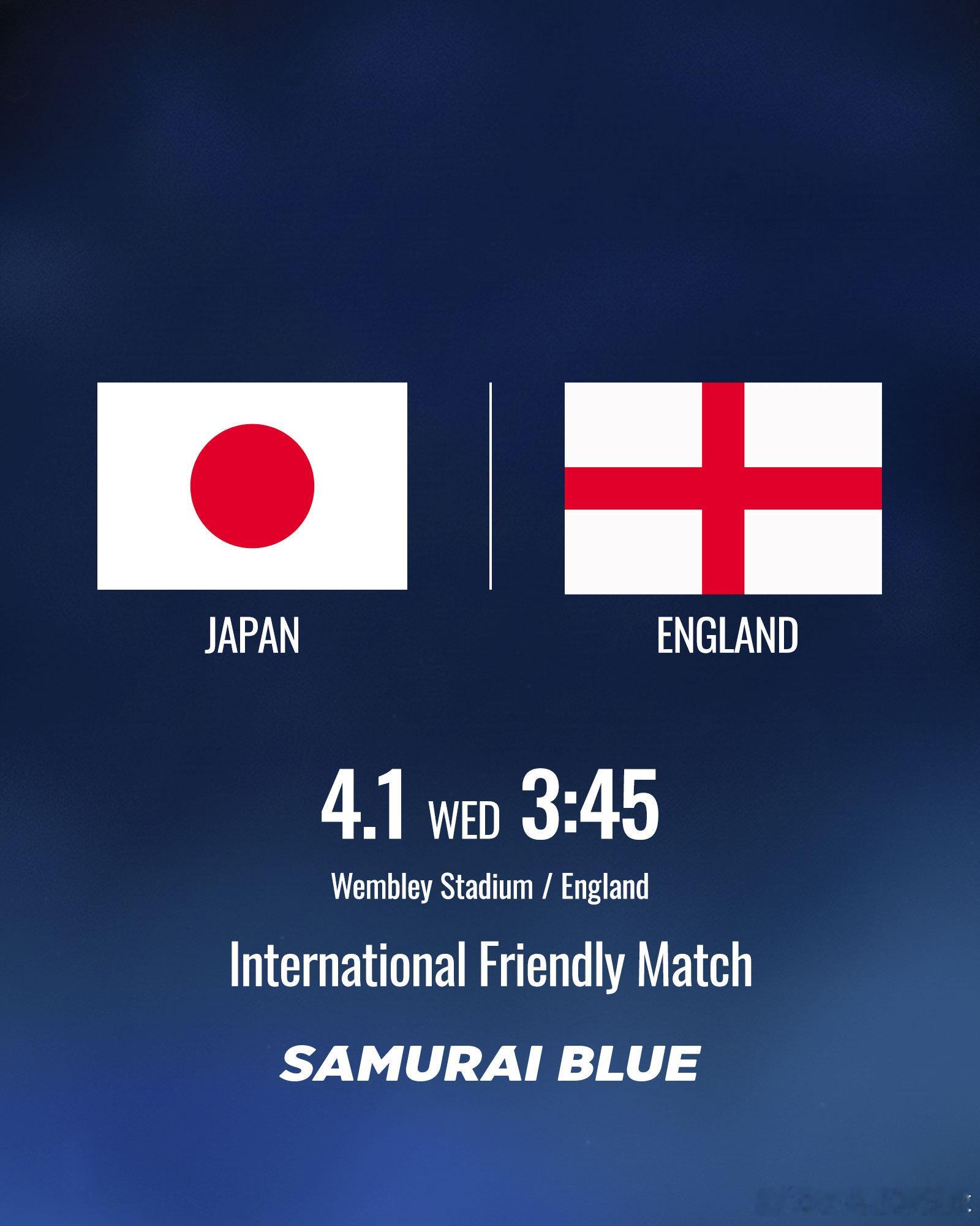 【国际友谊赛·预告】 将于2026年4月1日在温布利球场与英格兰国家队进行一场友谊赛。⌚️北京时间4月1日凌晨2:45KO🏟️温布利球场⚔️ 🆚 英格兰国家队🏴📺直播平台待定📊英格兰最新FIFA排名:第四📝日本对英格兰过往战绩:0胜2负1平(进3球,失5球)